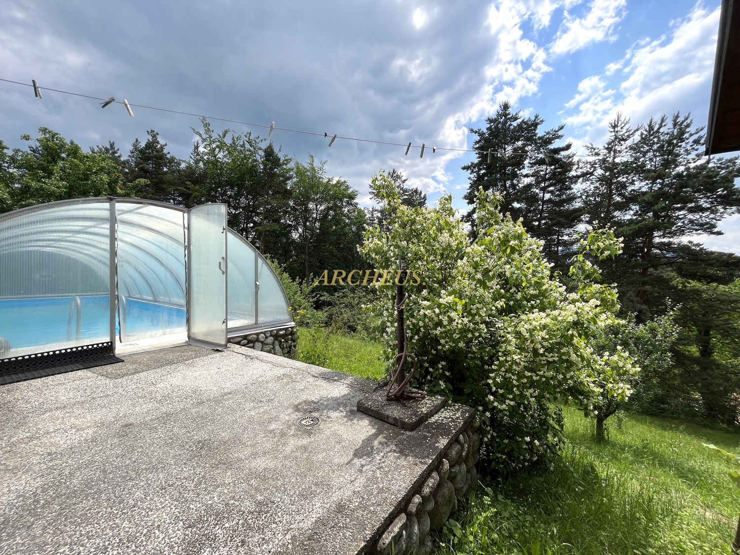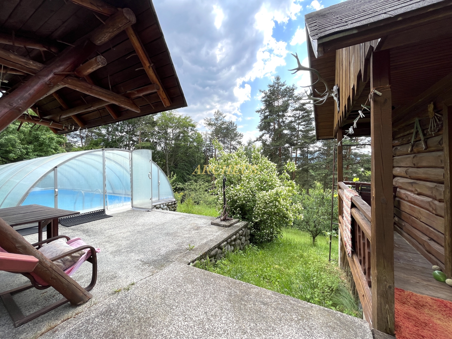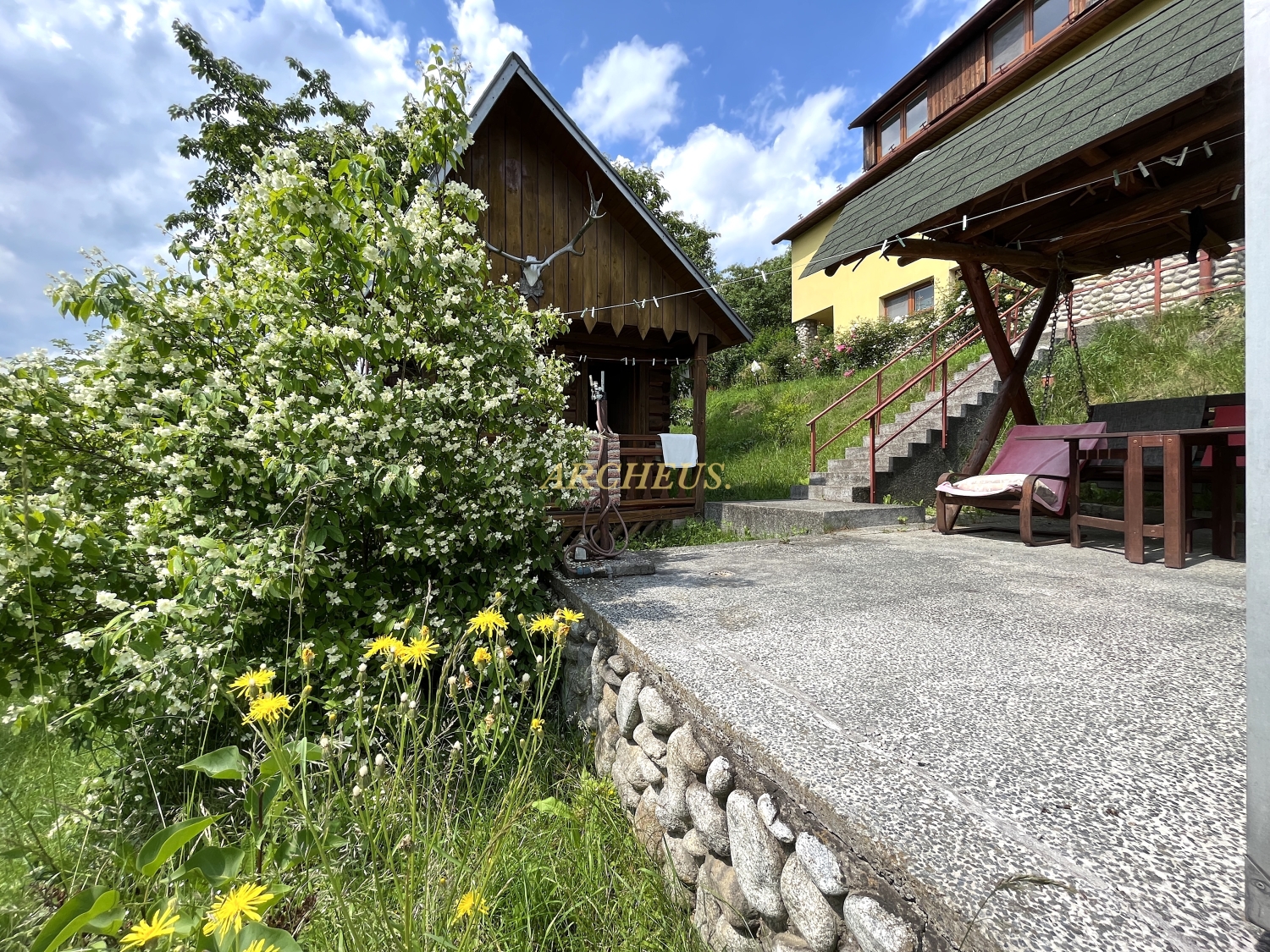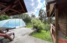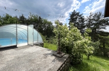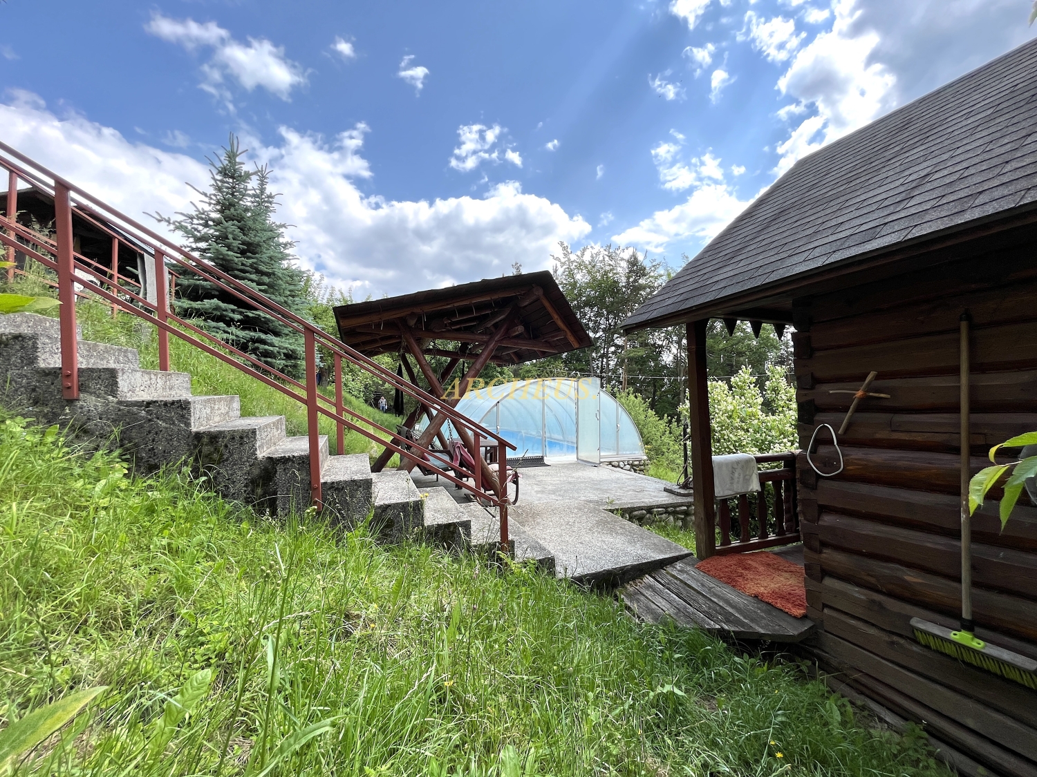 Na pozemku sa nachádza bazén s protiprúdom a drevená záhradná chatka.