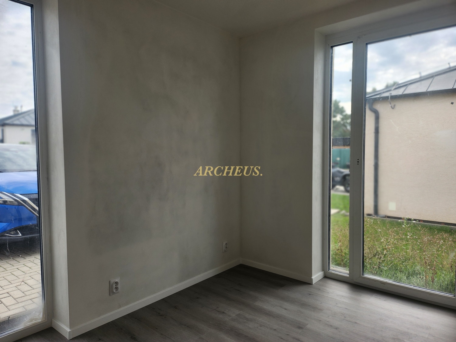 Dom bude odovzávaný v štandarde - PVC podlahy, zárubne, dvere, komplet kúpelňa so sprchovým kútom a WC - sanita, osvetlenie, vypínače, zásuvky ( predpoklad september 2025)