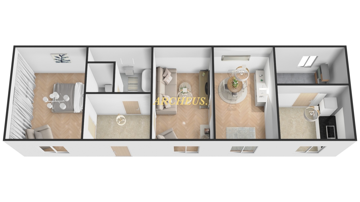 Obývacia izba, spálňa, jedáleň, kuchyňa