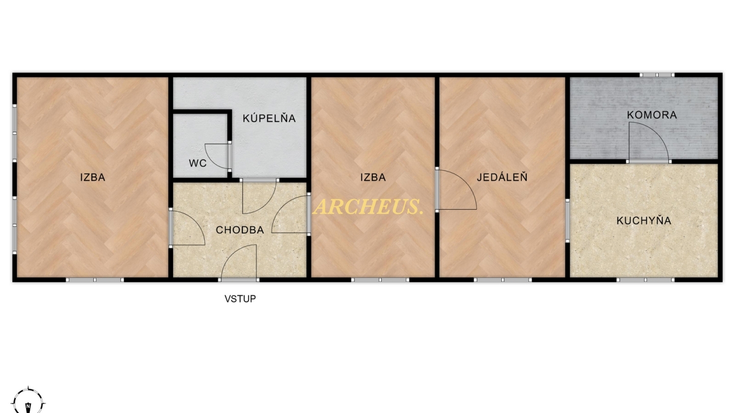 Podlahy: plávajúce podlahy v izbách, dlažba v kuchyni a kúpeľni