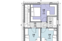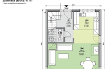 - Možné je postaviť rekreačný dom, zastavaná plocha cca 50-55 m2 s podkrovím alebo ustúpeným podlažím (príklad pôdorysu 4 izbového domu, ktorý by bolo možné realizovať nájdete vo fotkách)