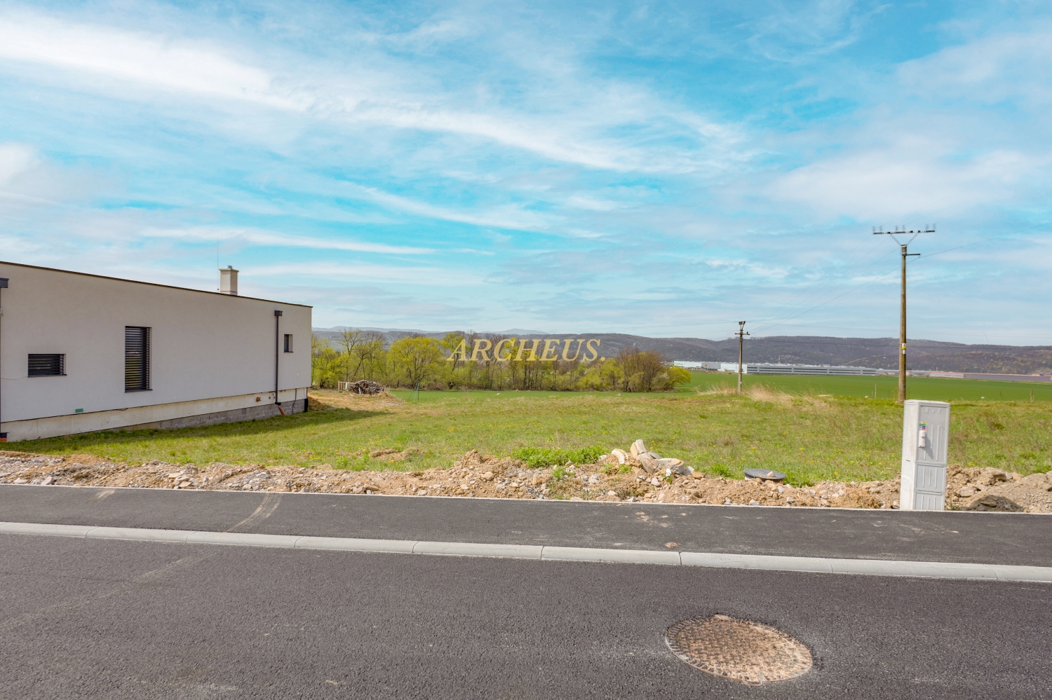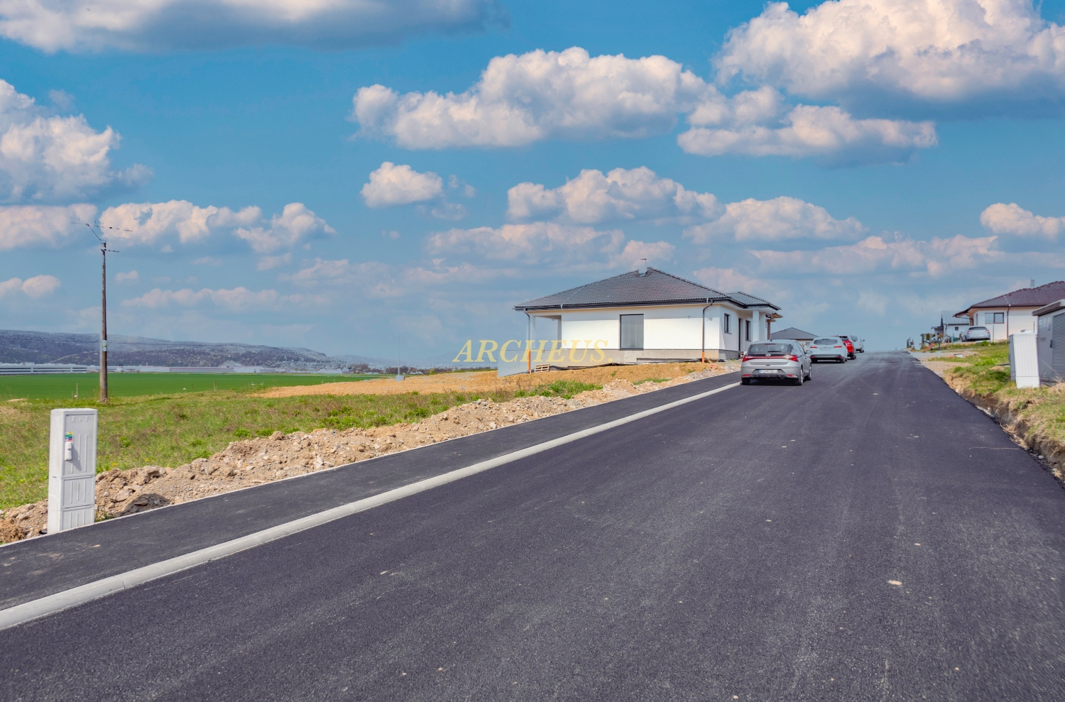 - Inžinierske siete pri hranici pozemku: elektrina, voda, kanalizácia, optický internet