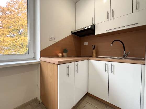 - kuchynská linka so zabudovanými spotrebičmi (teplovzdušná rúra, indukčná varná doska, digestor, chladnička s mrazničkou, umývačka riadu, mikrovlnka)
