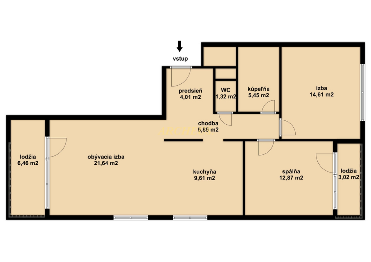 dve priestranné lodžie s celkovou výmerou 9,48 m²