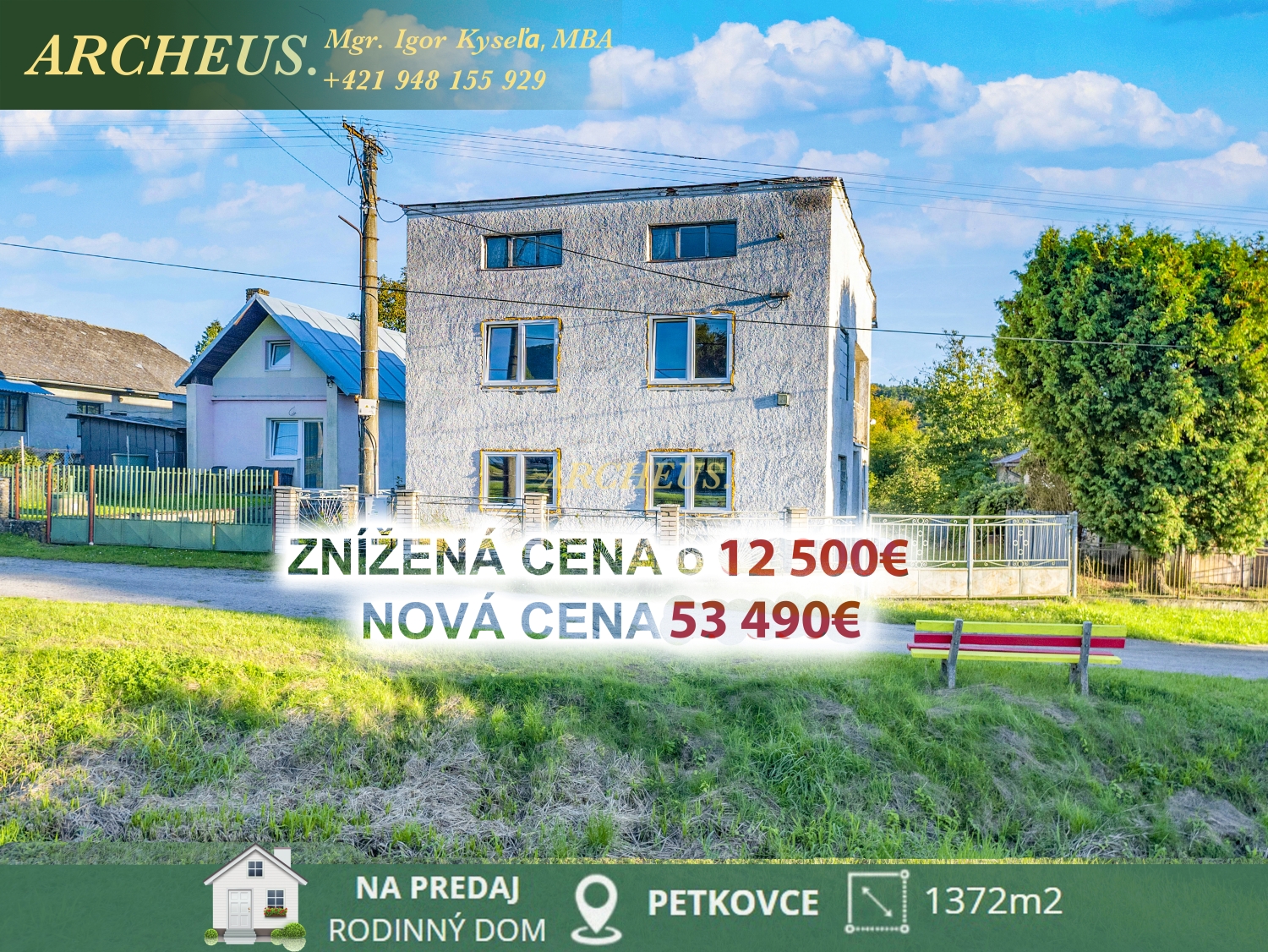 ZNÍŽENÁ CENA NA PREDAJ RODINNÝ DOM, POZEMOK 1372m2, PETKOVCE