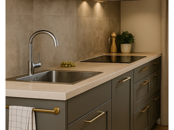 • Súčasťou vybavenia sú 2 priestranné vstavané skrine a kuchynská linka