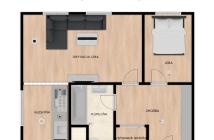 • Plávajúce podlahy v izbách, dlažba v kúpeľni a chodbe