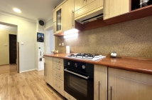 - kuchynská linka so spotrebičmi (kombinovaný sporák, mikrovlná rúra, digestor,)