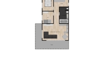Byt ma rozlohu 63 m2 a priestranná terasa 13 m2.