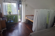 Poschodie: hlavná spálňa, dve detské izby, samostatné WC a balkón s výhľadom do záhrady.
