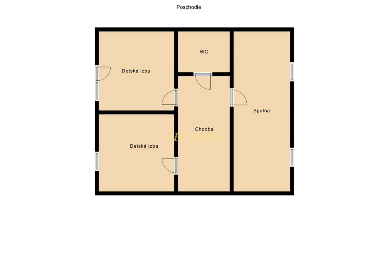 Poschodie: hlavná spálňa, dve detské izby, samostatné WC a balkón s výhľadom do záhrady.