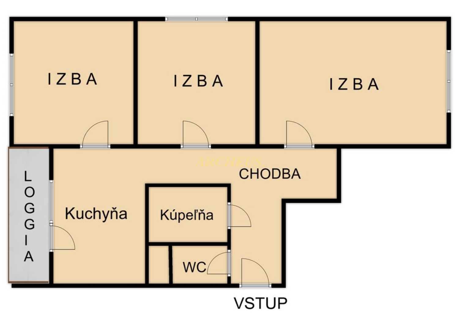- podlahová plocha bytu je 65 m2, prináleží k nemu priestranná loggia a murovaná pivnica