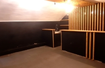 k dispozícii drevený barový pult, stôl, stoličky 🍸