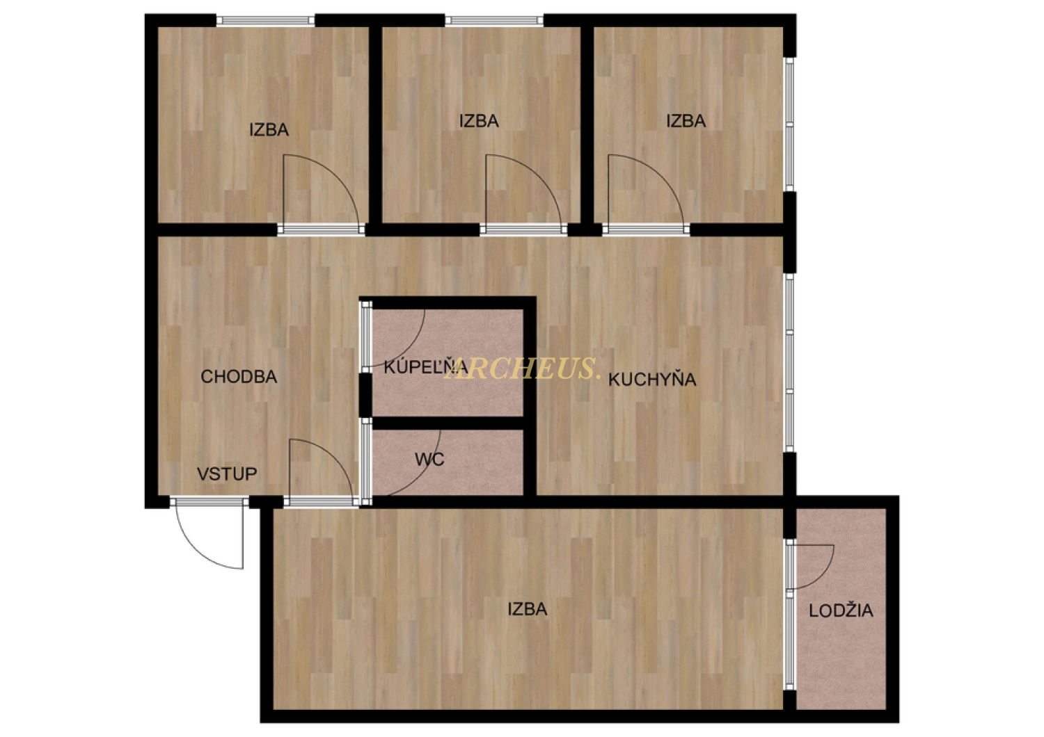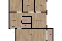 - dispozícia bytu: 4 nepriechodné izby, kuchyňa, kúpeľňa, WC, loggia