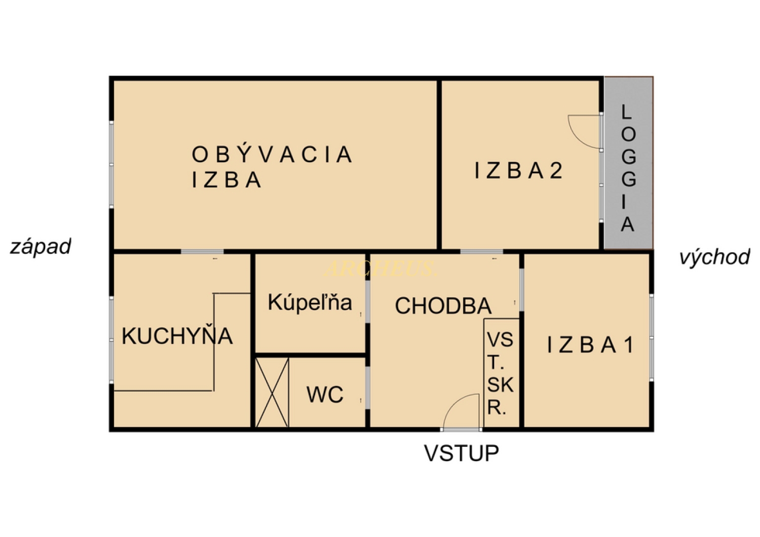 - byt pozostáva z 3 obytných izieb a príslušenstva - kuchyňa, chodba, kúpeľňa, WC a loggia
