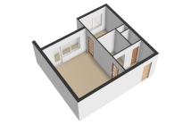 dispozícia: obývacia izba spojená s kuchyňou, izba/spálňa, chodba, kúpeľňa, samostatné WC