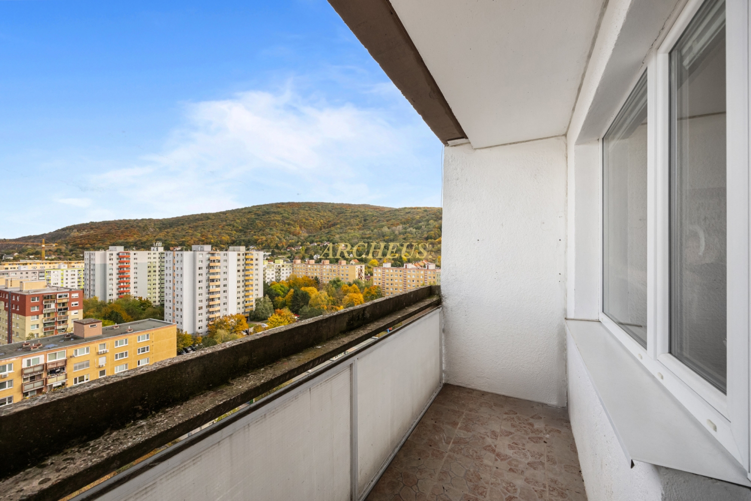 Byt sa nachádza na 13. poschodí z 13 udržiavaného bytového domu, čo mu dodáva jedinečný panoramatický výhľad, dostatok svetla a pocit súkromia.