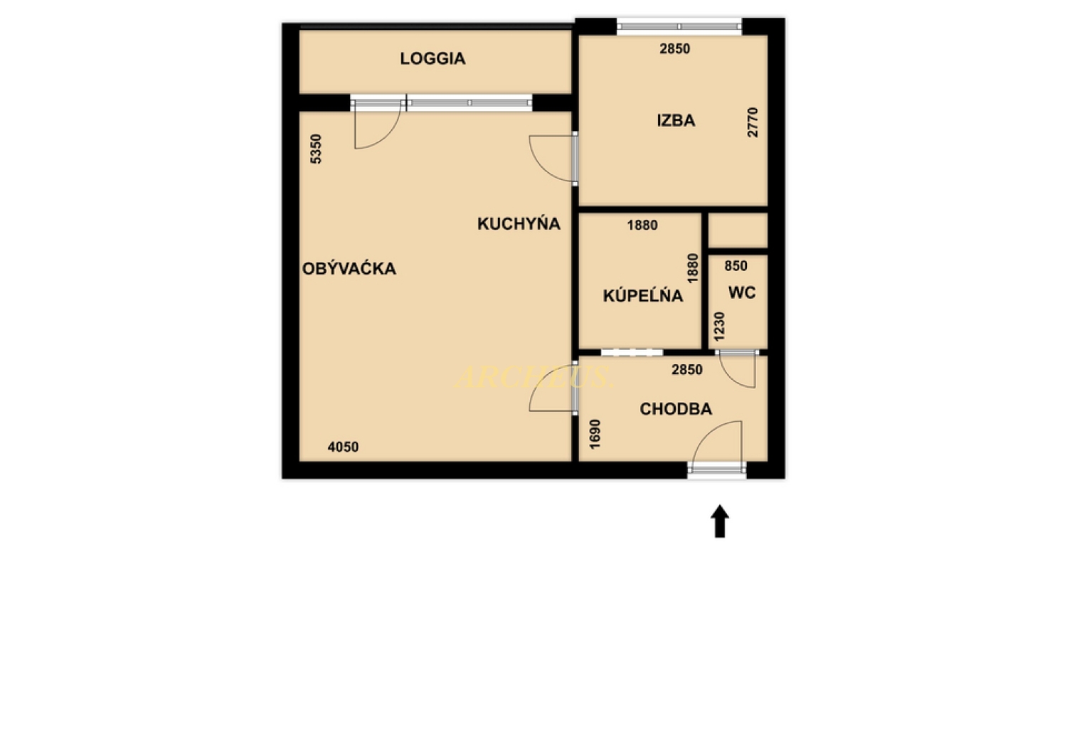 výmera: 40,54 m² + loggia 4,5 m² + pivnica 1,8 m²