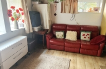 Na prízemí sa nachádza priestranná obývacia miestnosť spojená s kuchyňou, kúpeľňa a menšia izba.
