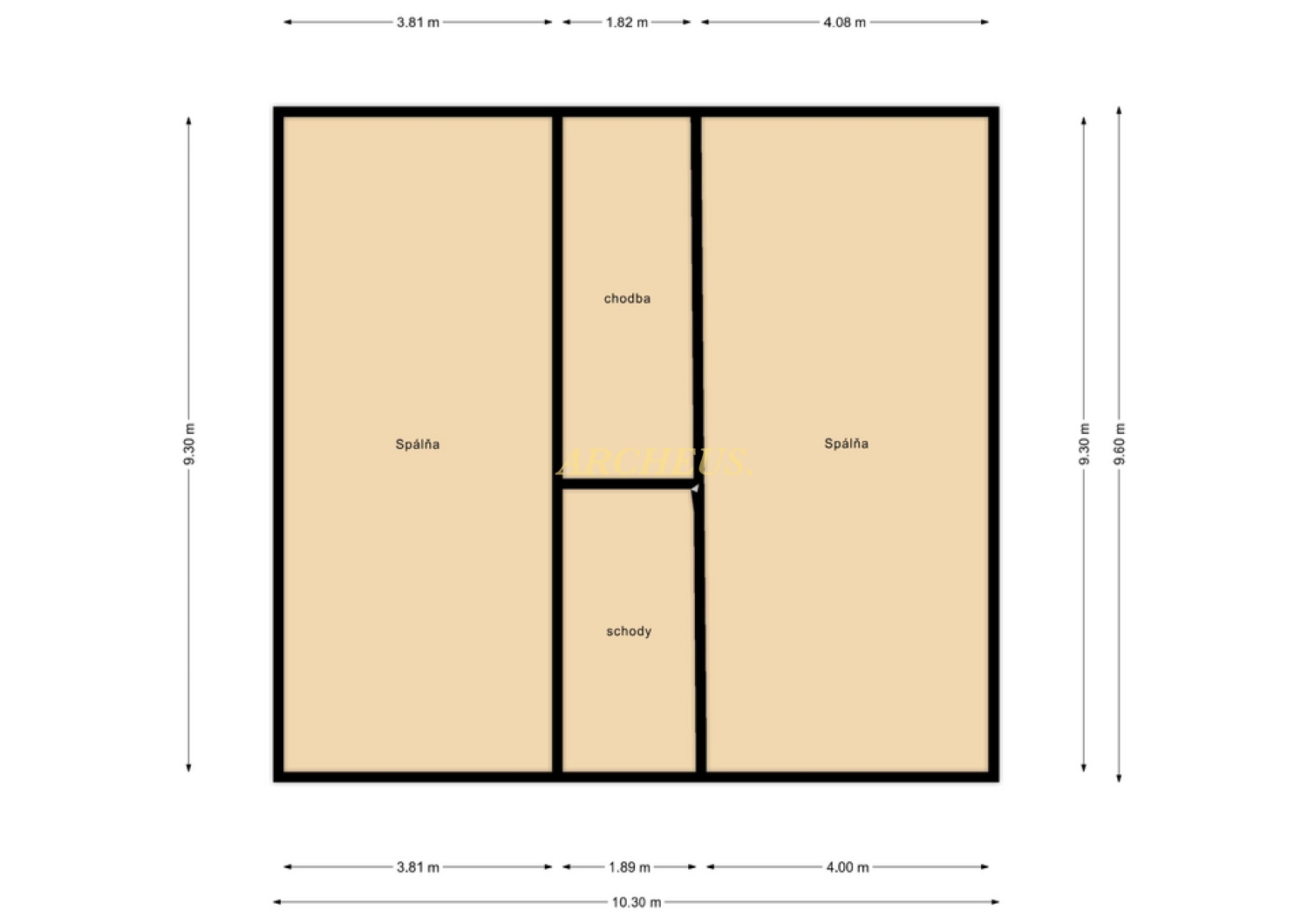 Na poschodí sú dve samostatné spálne, ktoré poskytujú dostatok priestoru pre rodinu či hostí.