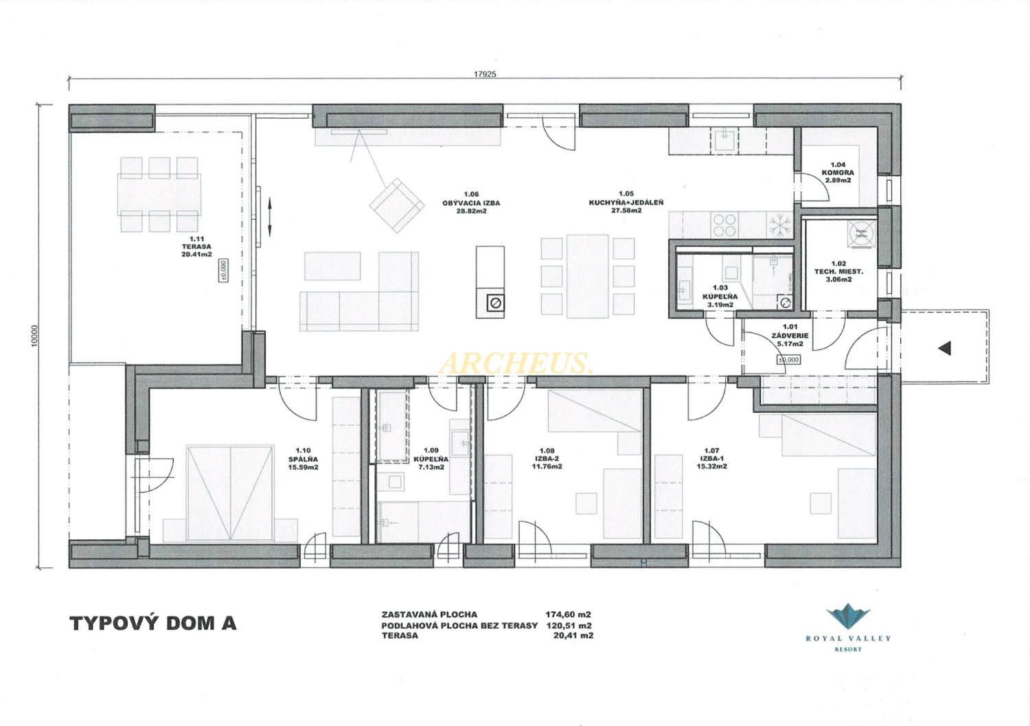 - podlahová plocha bez terasy 120,51 m2