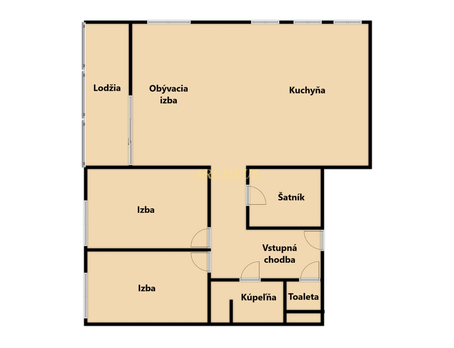 - kuchyňa s jedálenským sedením prepojená s obývacou izbou a vstupom na lodžiu