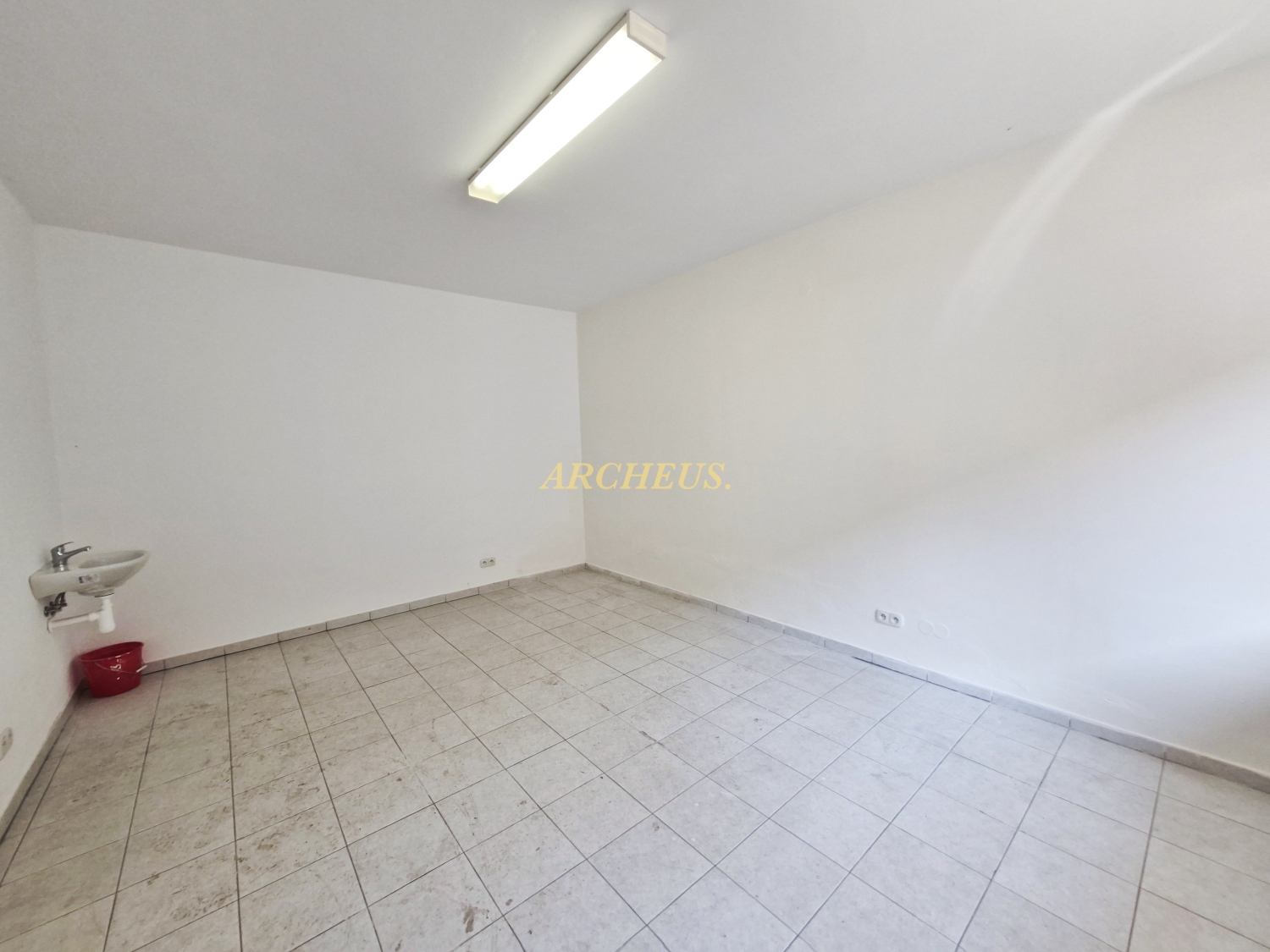Priestor je čerstvo vymaľovaný s osadeným novým umývadlom.