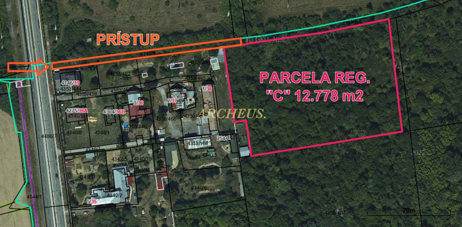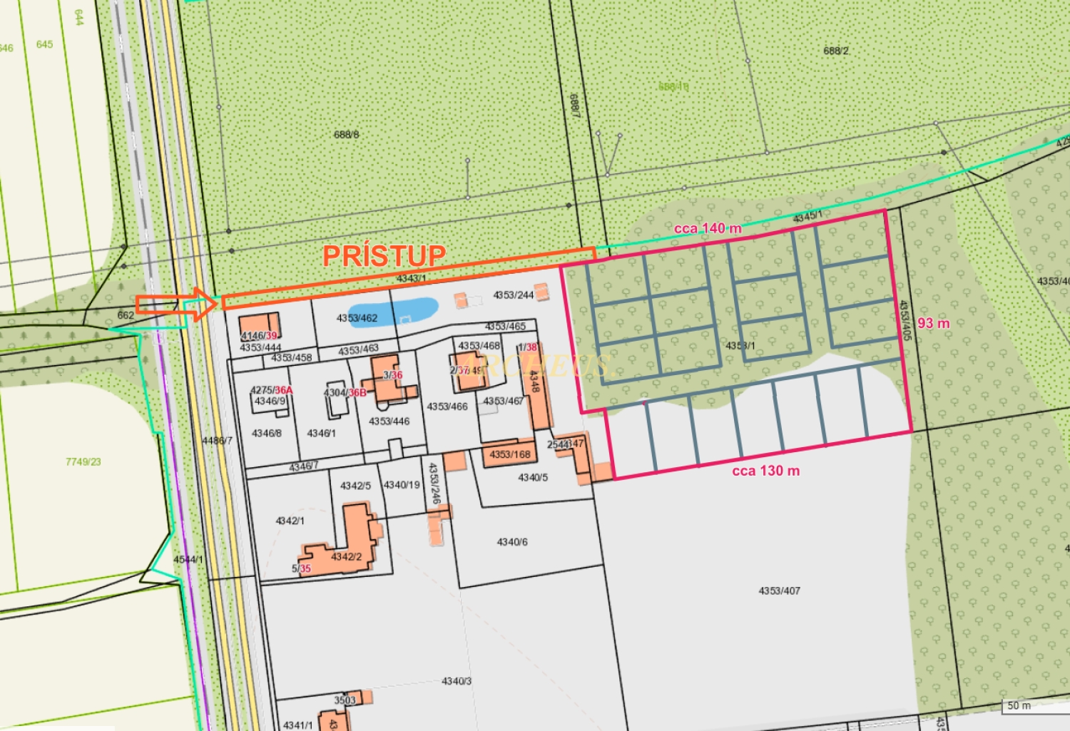 - prístup vedie cez parcelu 4343/1, kde je zakotvené právo prechodu a prejazdu motorovými vozidlami, právo uloženia a vedenia inžinierskych sietí a právo na úpravu alebo výstavbu prístupovej komunikácie v prospech predmetnej parcely