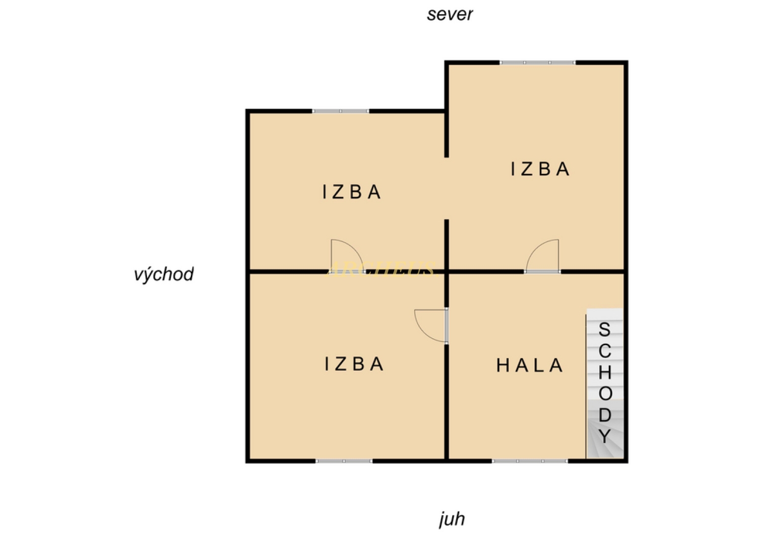 - okná aj dvere sú dvojité drevené, pôvodný stav stien aj podláh (drevené parkety)