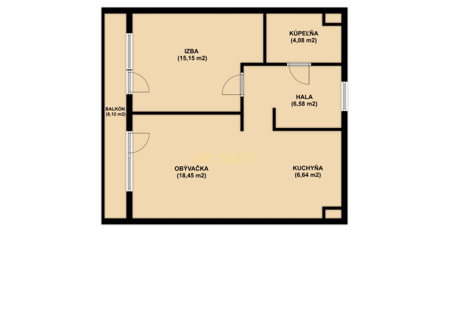 Dispozične je byt riešený veľmi prakticky. Vstupná hala (6,58 m2) s dostatkom úložného priestoru plynule nadväzuje na priestrannú obývaciu izbu (18,45 m2) prepojenú s modernou kuchyňou (6,64 m2) vybavenou kvalitnými spotrebičmi. Samostatná spálňa (15,15 m2) poskytuje dostatok súkromia a taktiež ponúka priamy vstup na balkón (8,12 m2). K dispozícii je priestranná kúpeľňa spojená s toaletou (4,08 m2). Balkón je ideálnym miestom na oddych a relax po náročnom dni.