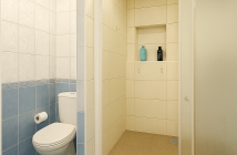 murovaná kúpeľňa so sprchovým kútom, umývadlom a WC