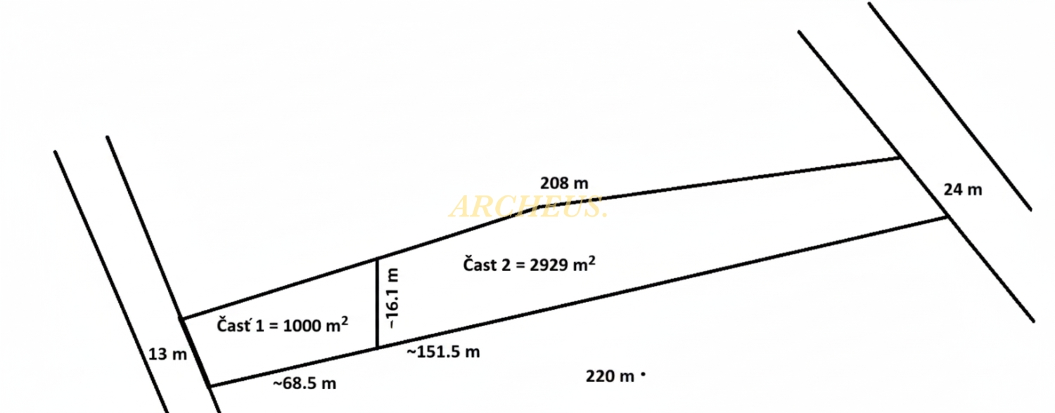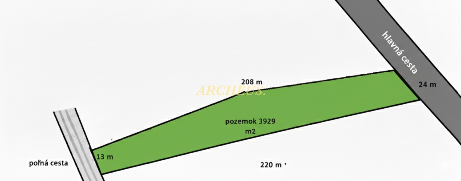 ✅ 1000 m2 / bez domu , inžinierske siete v dosahu - 33 €/ m2 = 33 000 €