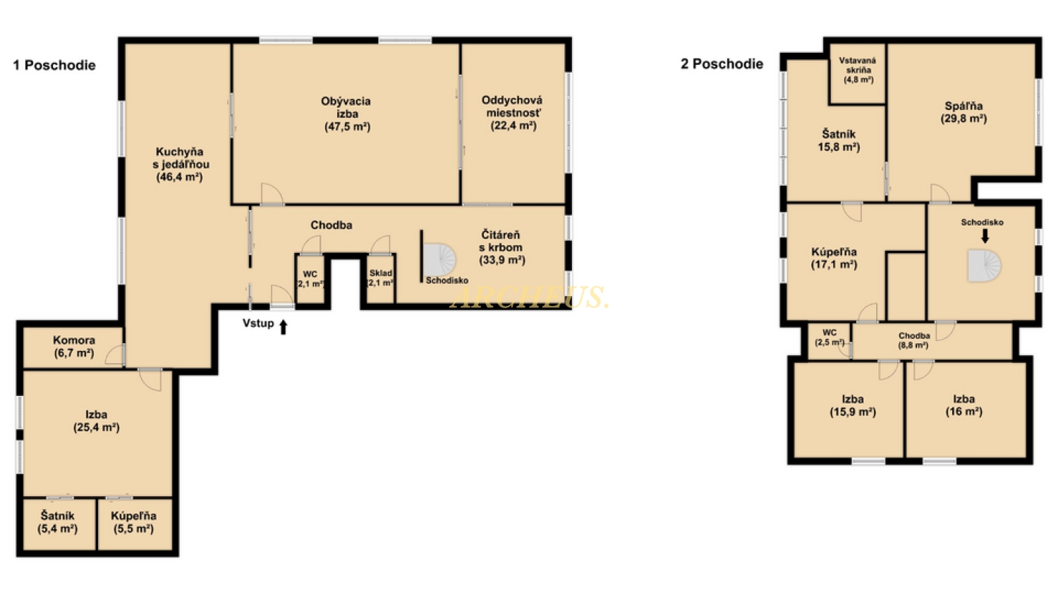 • Dispozícia: 5 izieb, zimná záhrada, čitáreň s krbom, 2x kúpeľňa, 3x WC