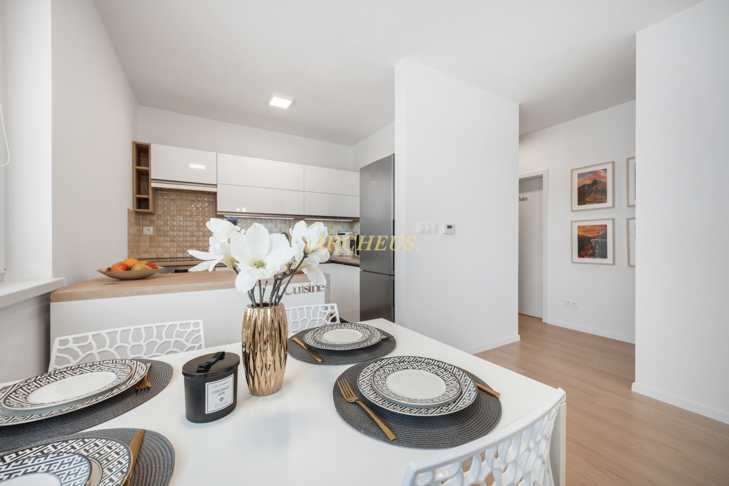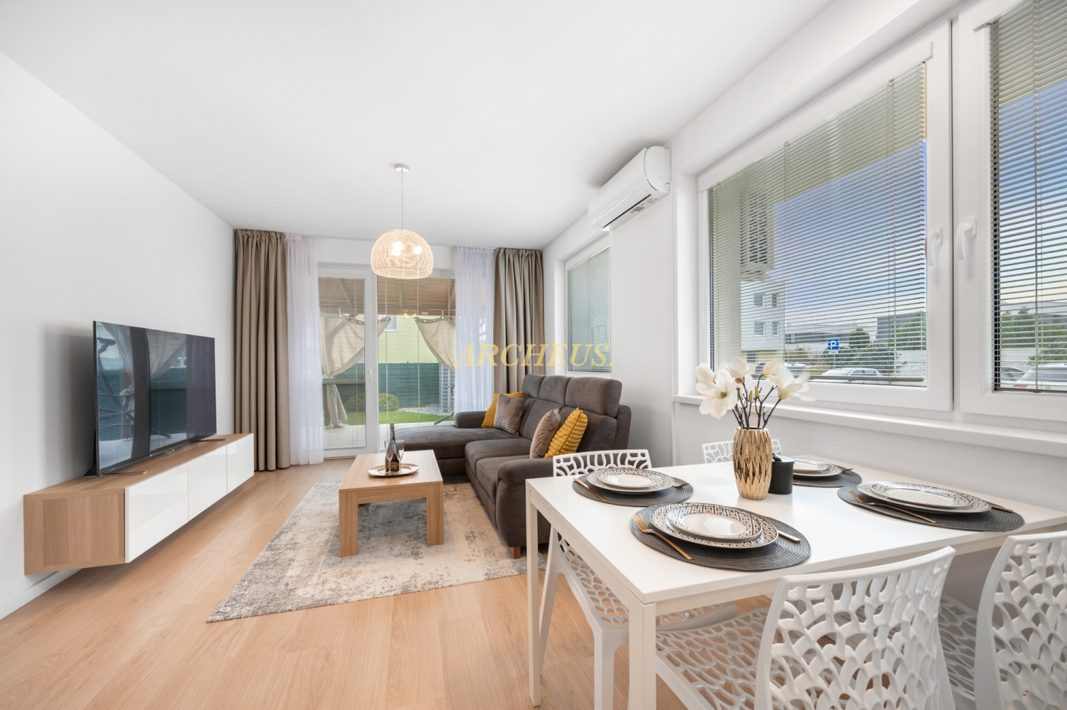 Typ nehnuteľnosti: Moderný 2-izbový zariadený byt v novostavbe na prízemí s vlastnou predzáhradkou a terasou