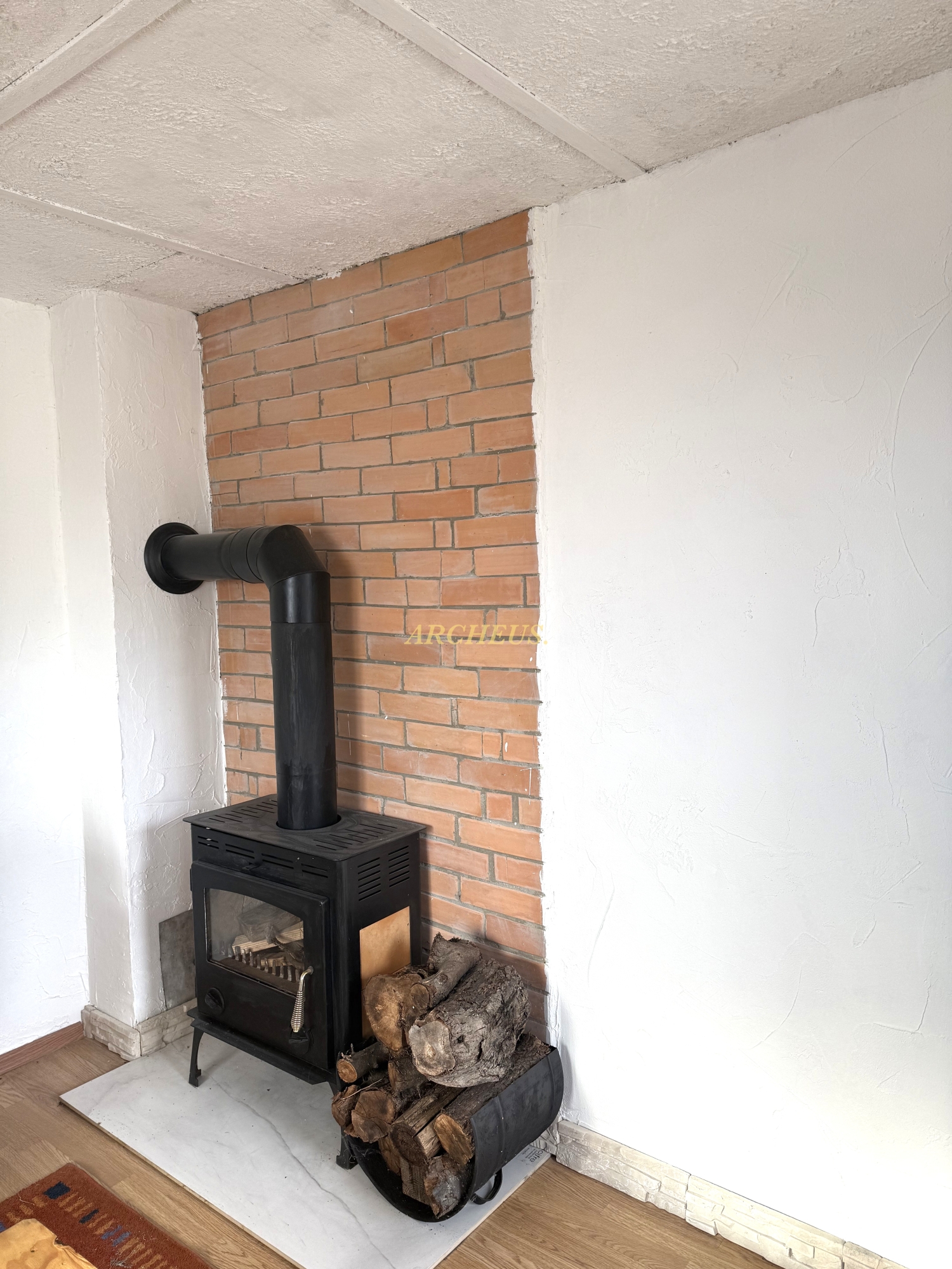 - nadzemné podlažie - tu sa nachádza veľká terasa 8m2, izba s krbovými kachľami na tuhé palivo, samostatné WC