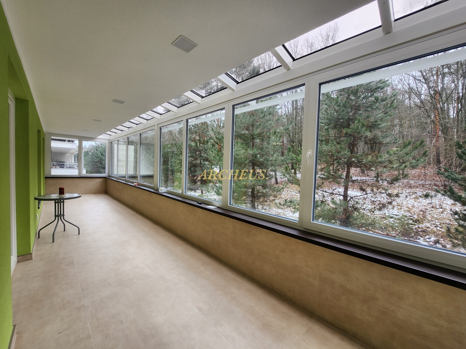Celková výmera bytu je veľkorysých 113,61 m², pričom dominantou priestoru je presklená celoročná zimná záhrada s výhľadom do lesa – ideálne miesto na rannú kávu, či oddych.