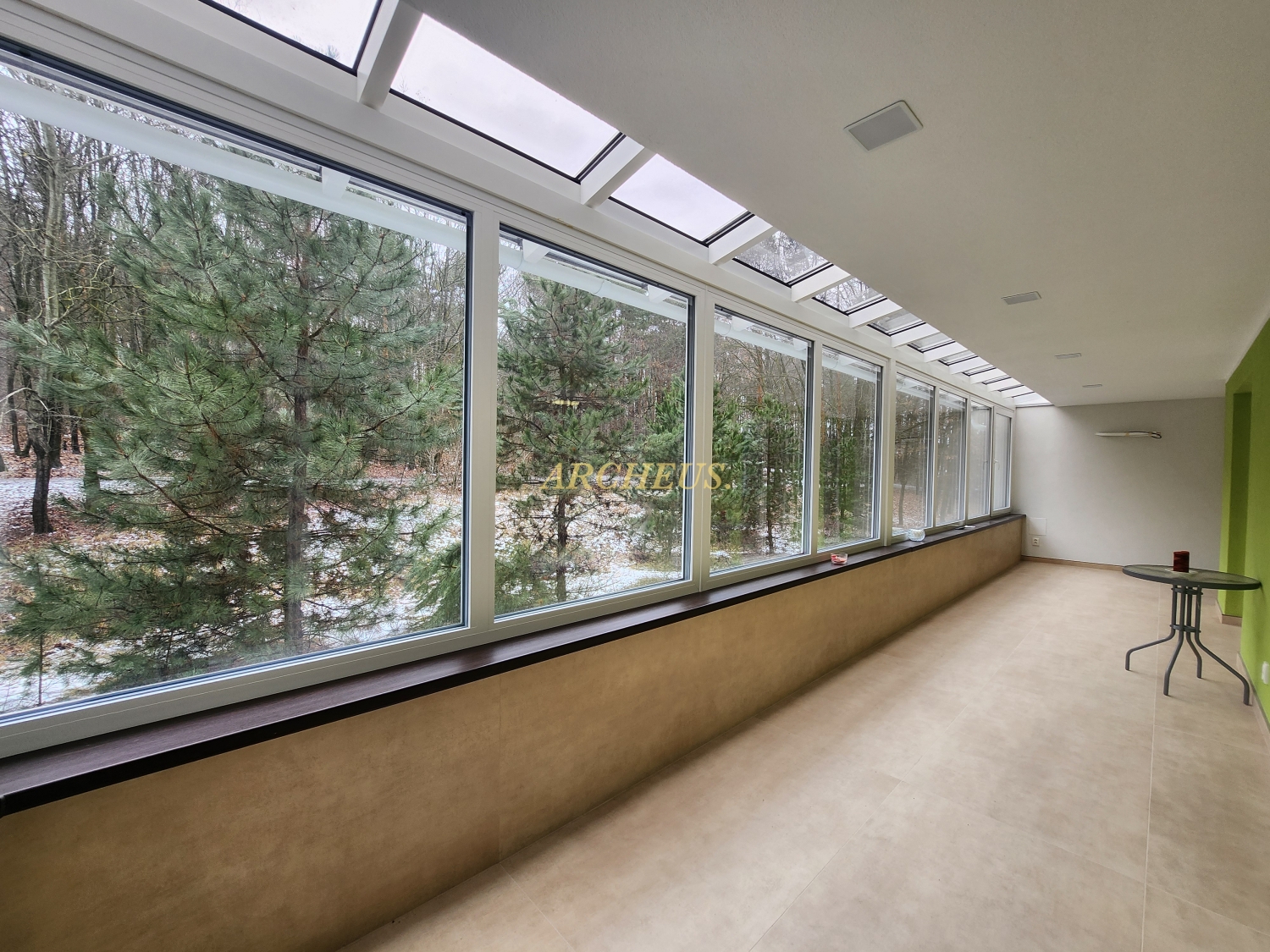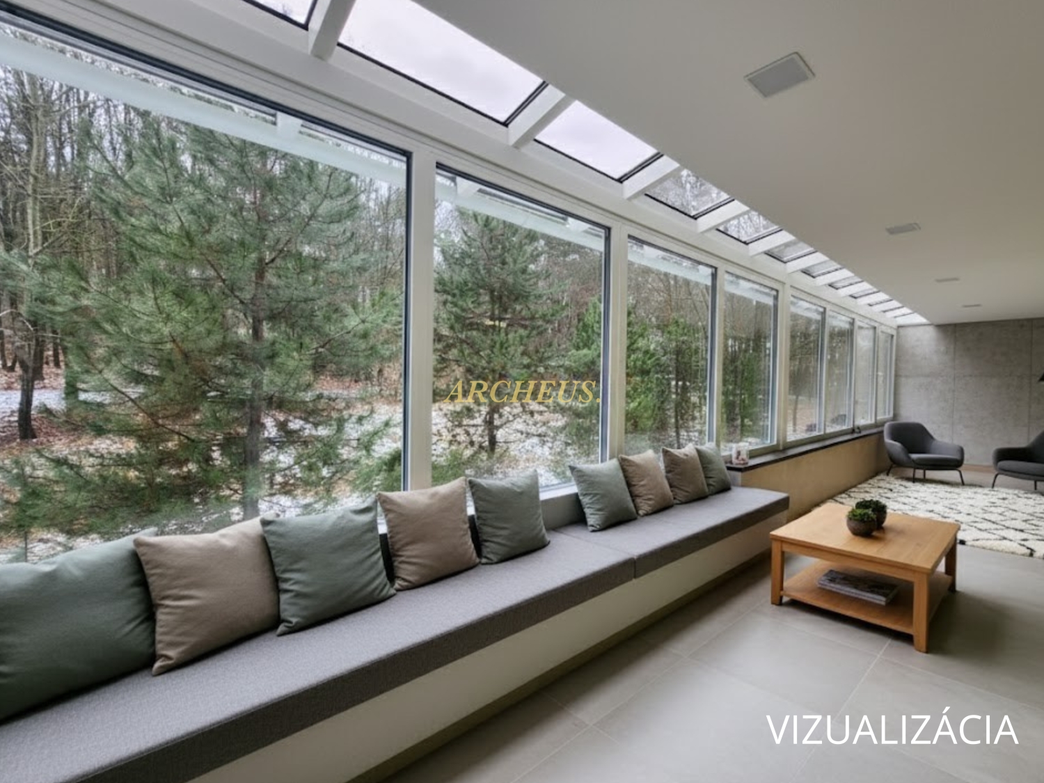 zimná záhrada 20,94 m² prístupná z dennej aj nočnej časti. Presklenie trojsklom zabezpečuje komfort počas celého roka bez zásahu do nosných konštrukcií