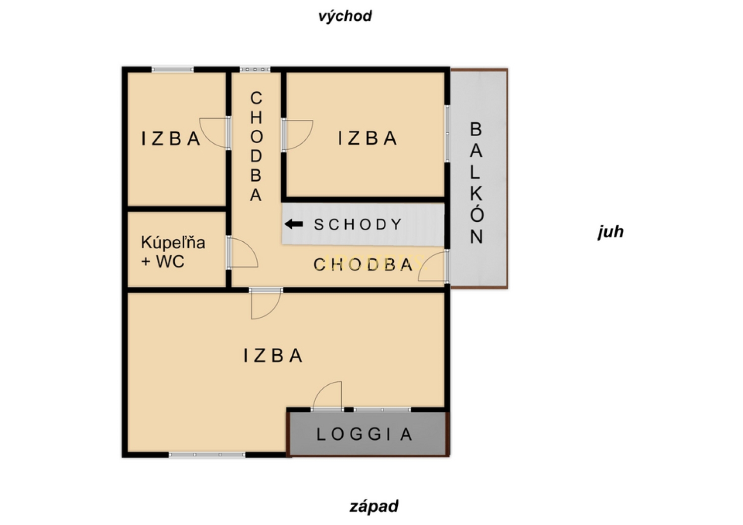 - celkovo je tu: 5 obytných izieb, kuchyňa, špajza, kúpeľňa + WC na každom poschodí, loggia, veľký prekrytý balkón