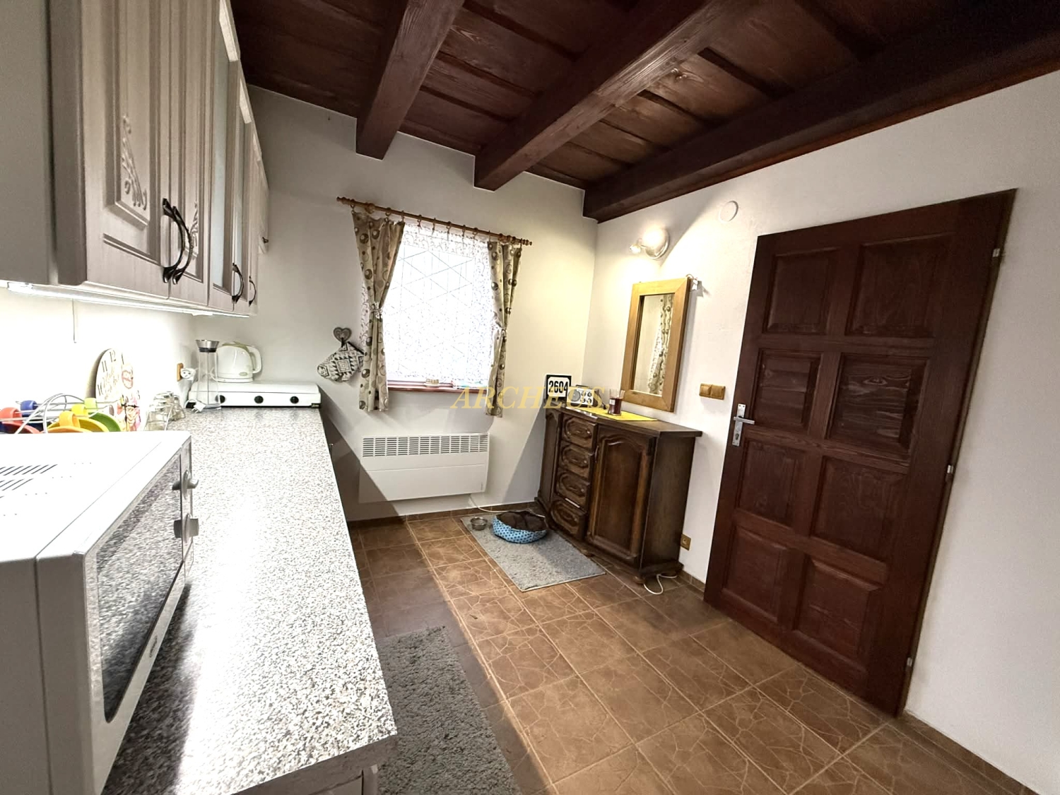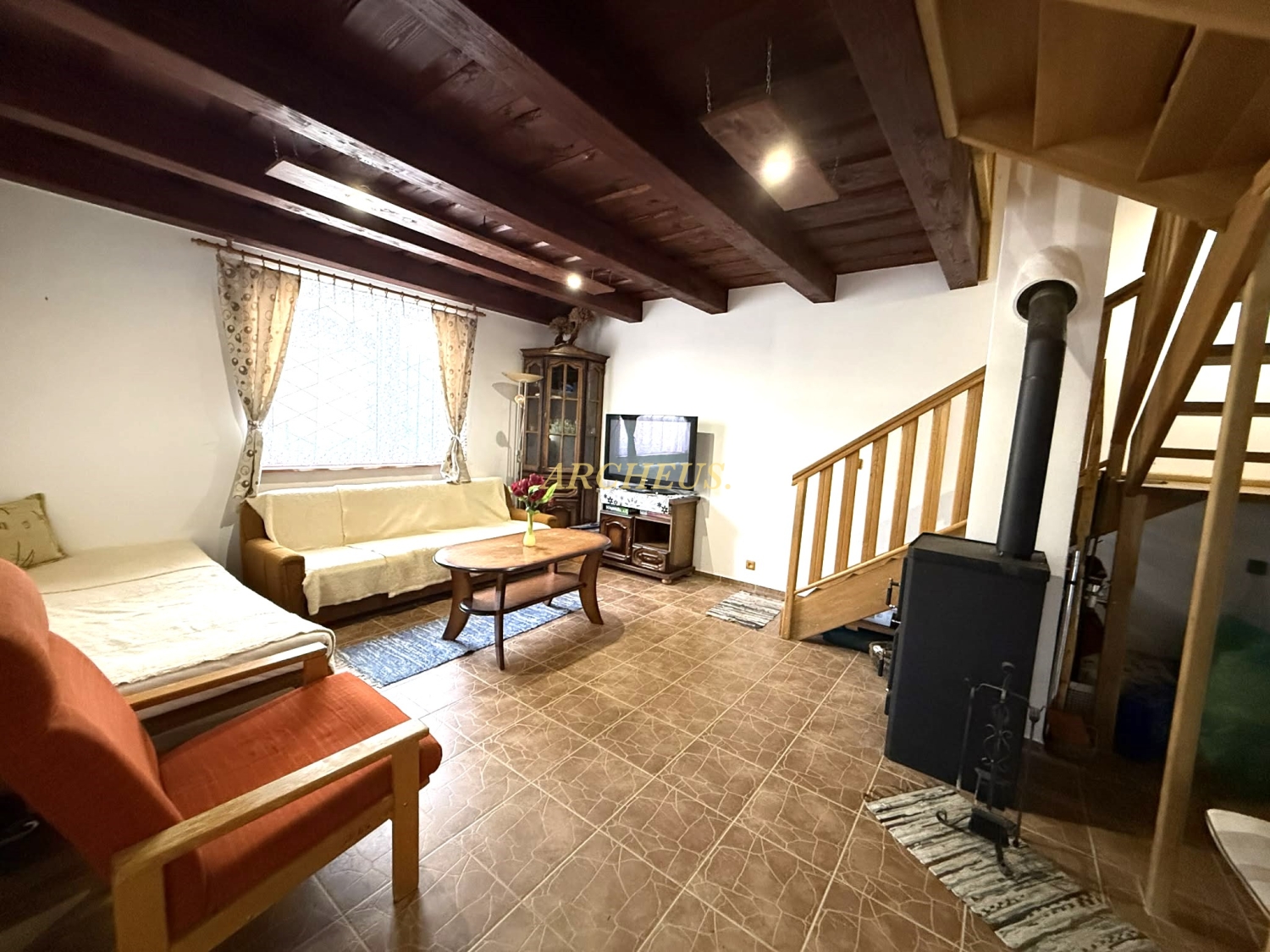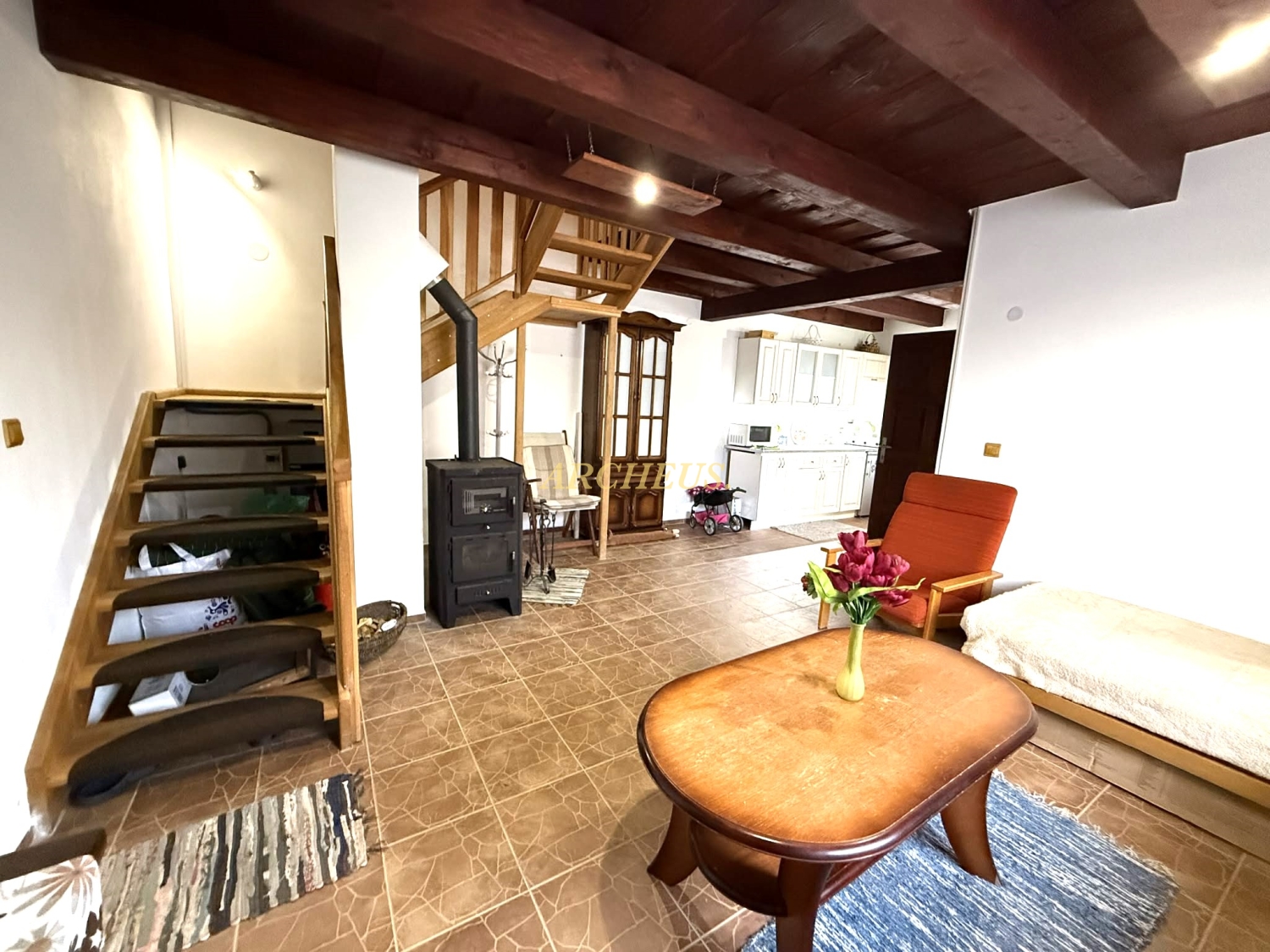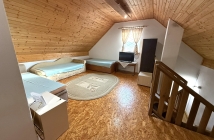 Pokoj postavený s citom - je to poctivá murovaná stavba (Porfix) s kvalitnými PVC oknami, ktoré udržujú teplo domova vo vnútri. Interiéru dominujú priznané drevené trámy, ktoré priestoru dodávajú neopísateľnú chuť pokoja a vidieckeho luxusu.
