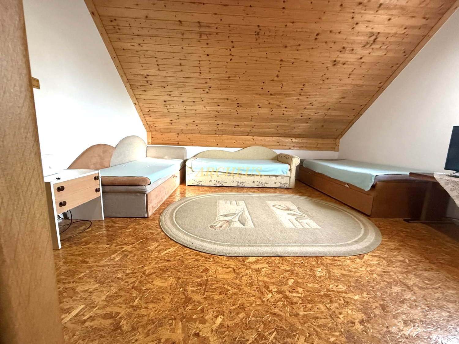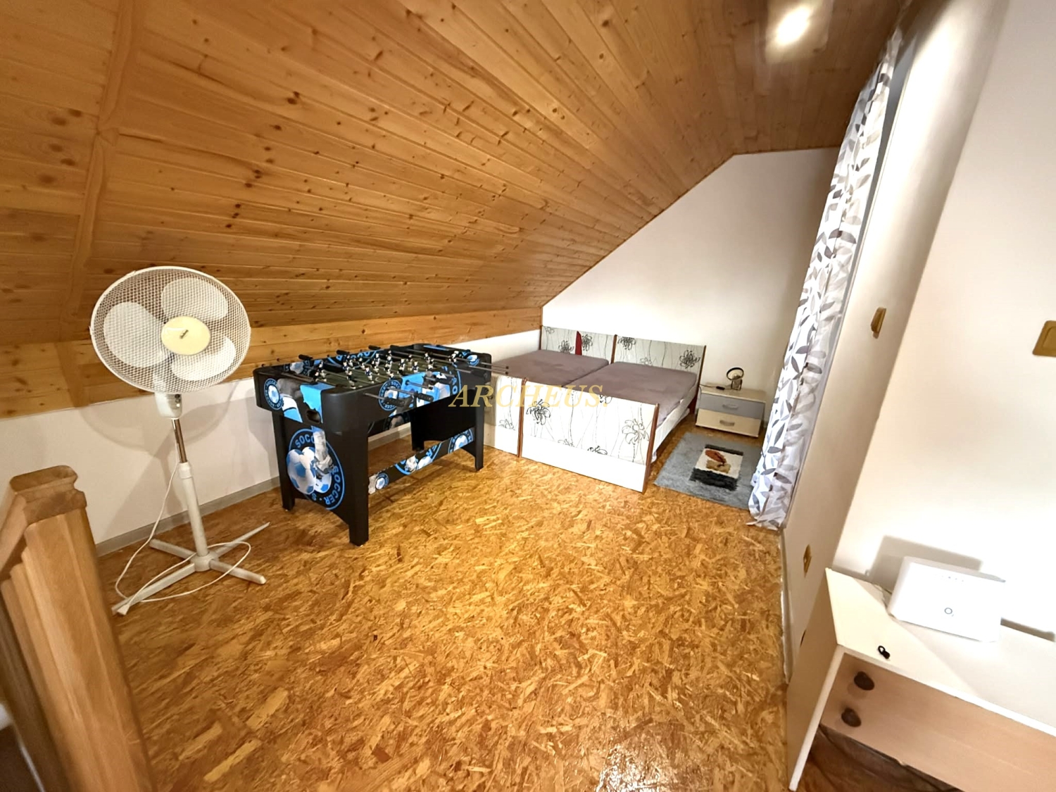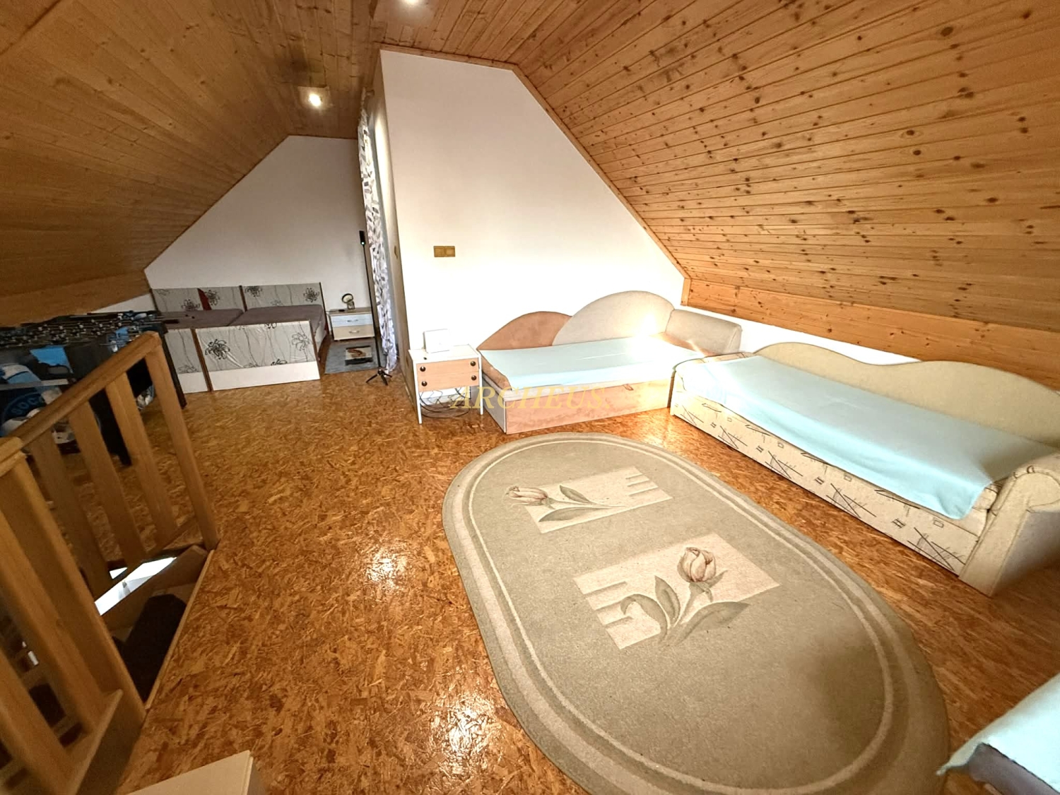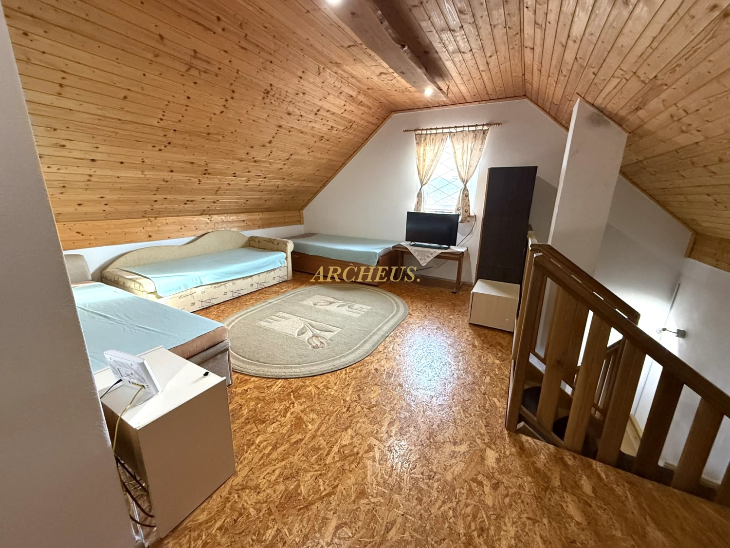 Pokoj postavený s citom - je to poctivá murovaná stavba (Porfix) s kvalitnými PVC oknami, ktoré udržujú teplo domova vo vnútri. Interiéru dominujú priznané drevené trámy, ktoré priestoru dodávajú neopísateľnú chuť pokoja a vidieckeho luxusu.