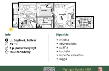 - celková plocha bytu je 55 m2 + loggia