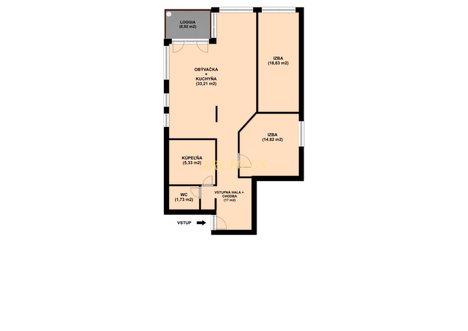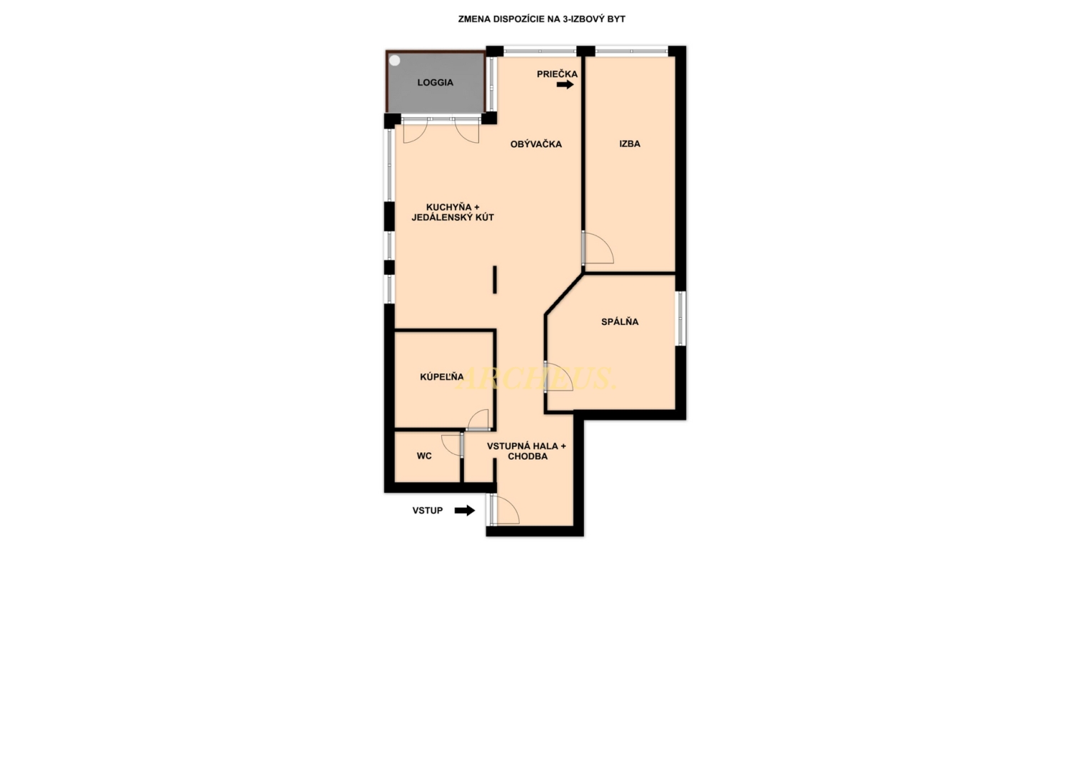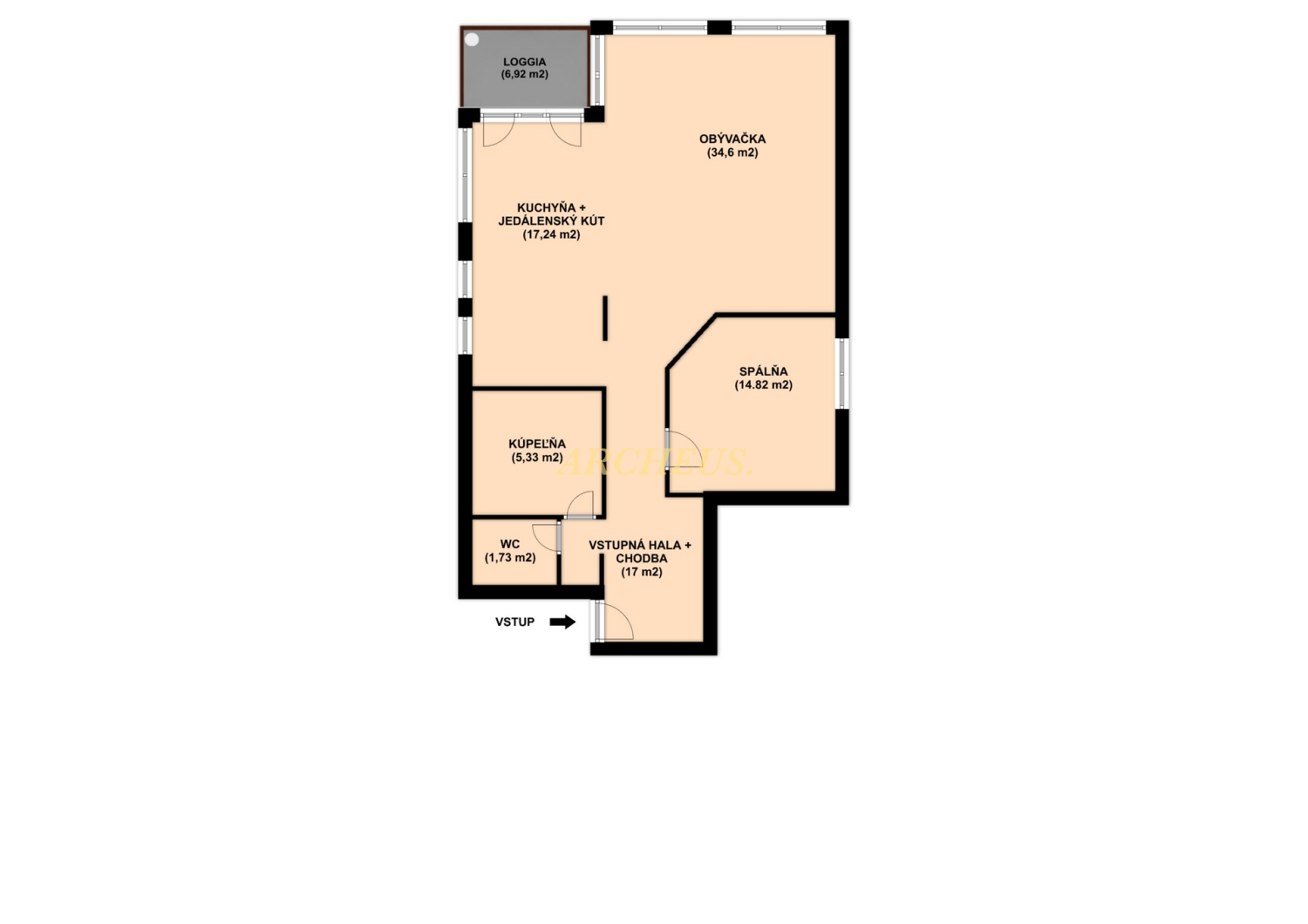 Srdcom bytu je obrovská obývacia izba prepojená s kuchyňou, z ktorej vyjdete priamo na loggiu. Ak radi varíte, veľká kuchyňa Vám poskytne kráľovský priestor. Byt má priestrannú kúpeľňu a samostatné WC, priestrannú vstupnú halu a samostatnú izbu - spálňu. V prípade potreby ďalšej izby pridaním jednej priečky vznikne ďalšia veľká samostatná izba.
