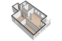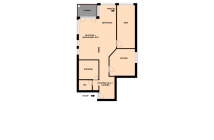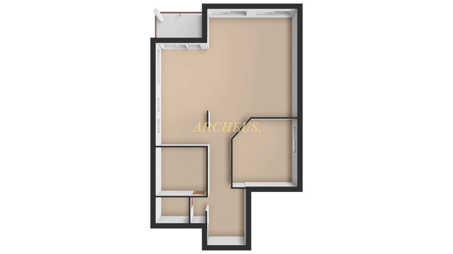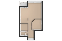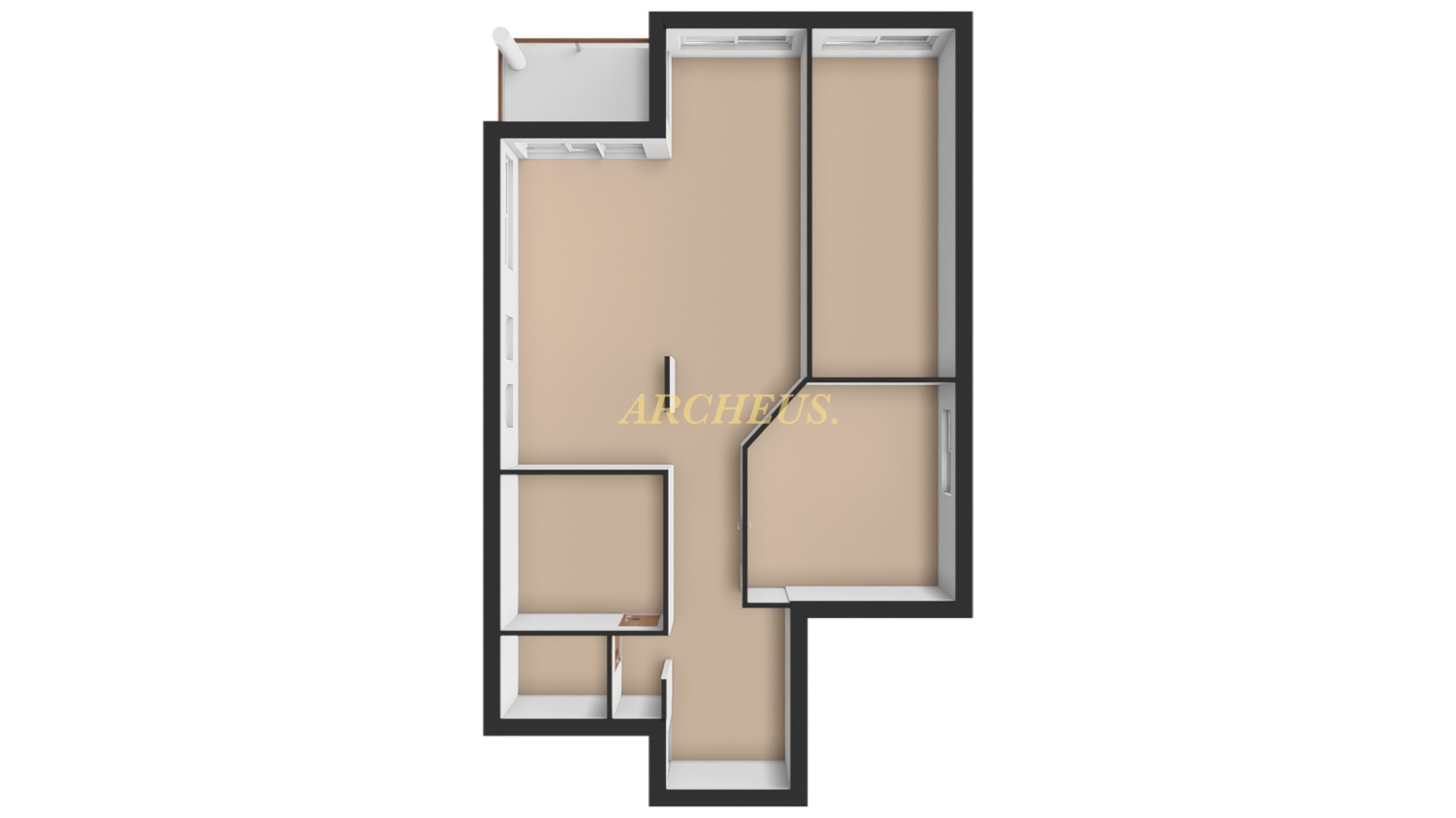 Dispozícia: Aktuálne veľkorysý 2-izbový byt s možnosťou jednoduchej zmeny na plnohodnotný 3-izbový (k dispozícii projekt, zmena dispozície v prípade potreby ďalšej samostatnej izby pridaním jednej priečky)