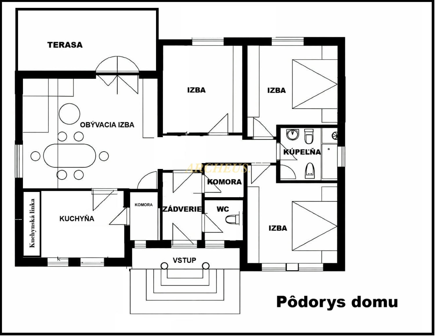 Dispozícia: 4-izbový rodinný dom + priestranná kuchyňa , ktorá sa dá prepojiť s obývačkou