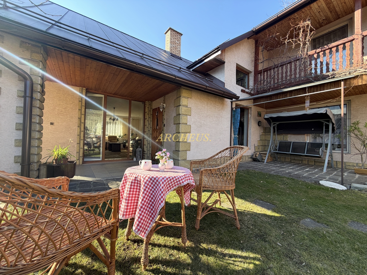 Dom je situovaný na veľkorysom, kompletne oplotenom pozemku s výmerou 1428 m². Celková úžitková plocha domu dosahuje približne 297 m².