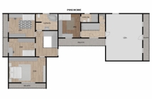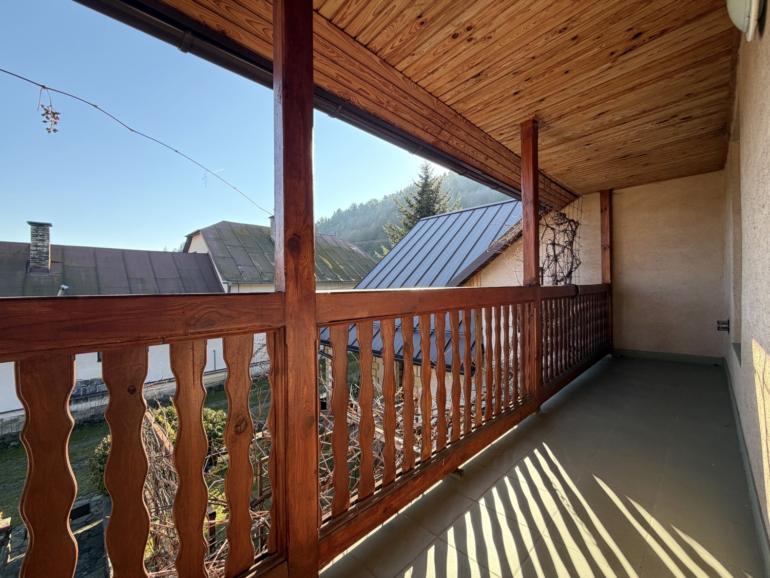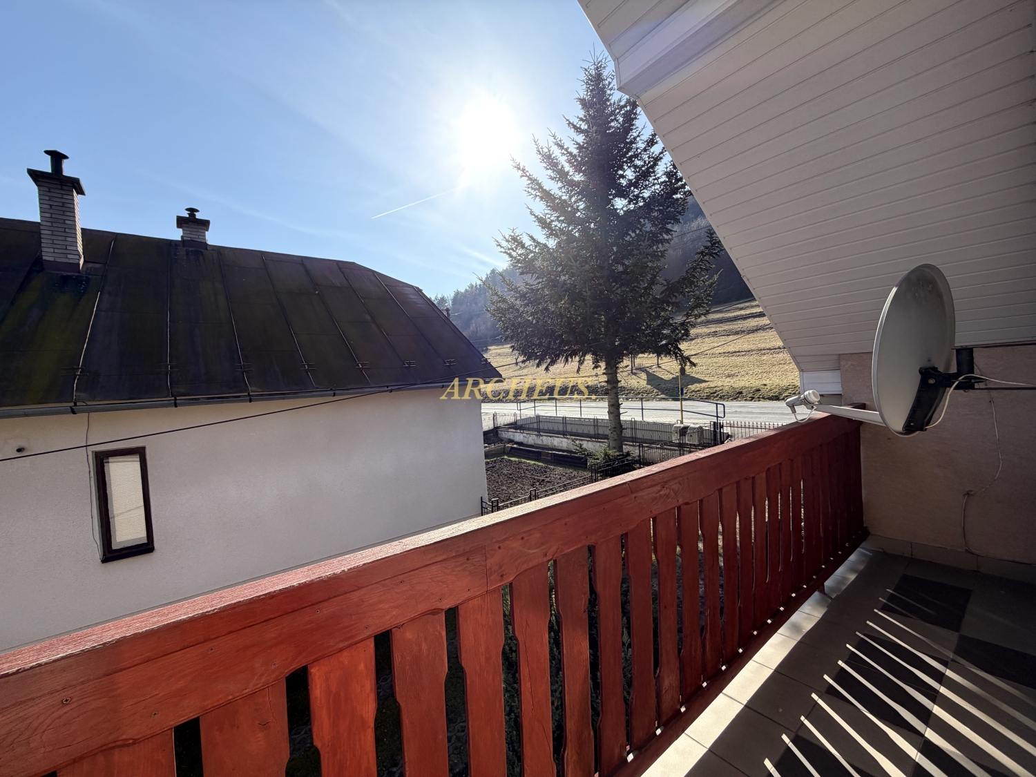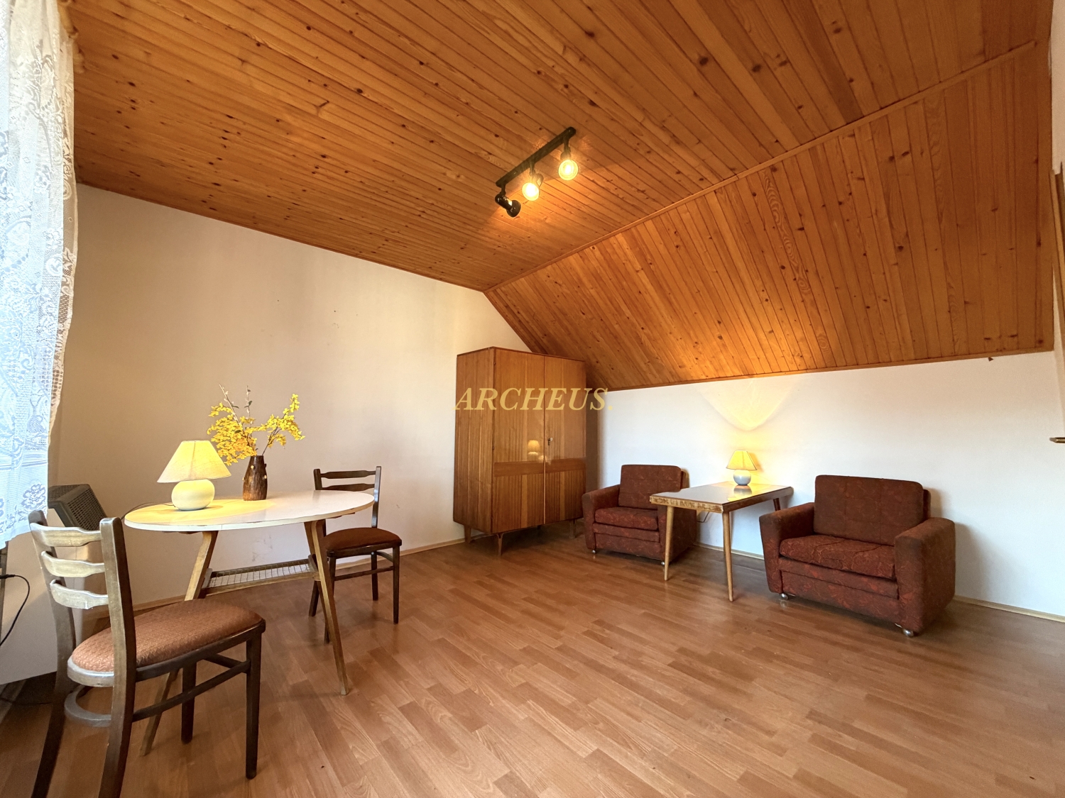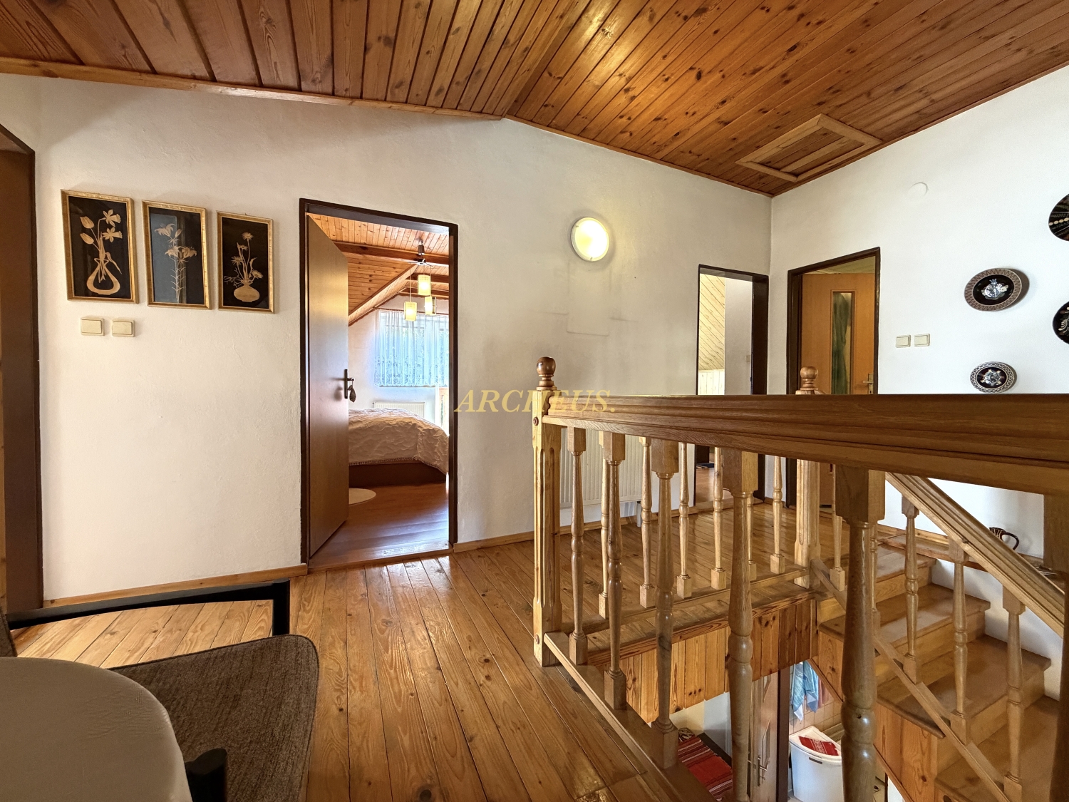 Horná časť: Obsahuje izbu s WC a sprchou a rozľahlú nedokončenú miestnosť s balkónom, vhodnú na dokončenie podľa vlastných predstáv (ateliér, kancelária či ďalšia samostatná bytová jednotka).