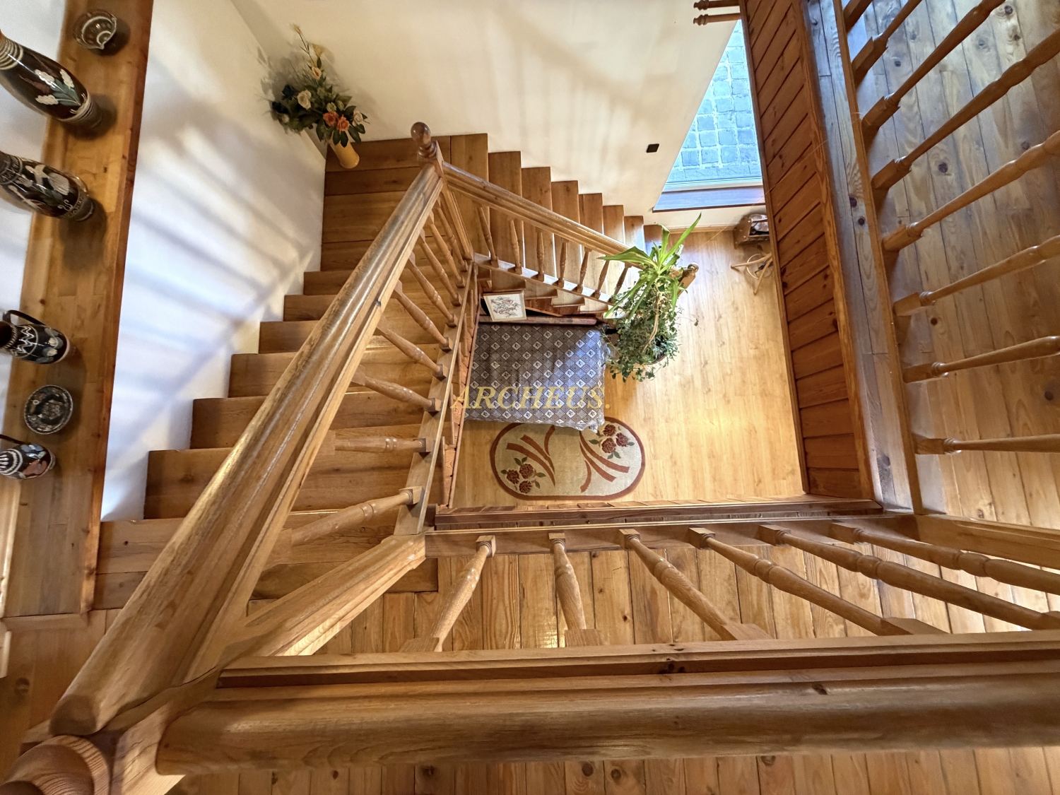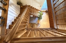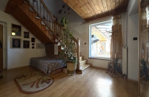 Interiér je prakticky rozdelený na dennú časť na prízemí a nočnú časť v podkroví: