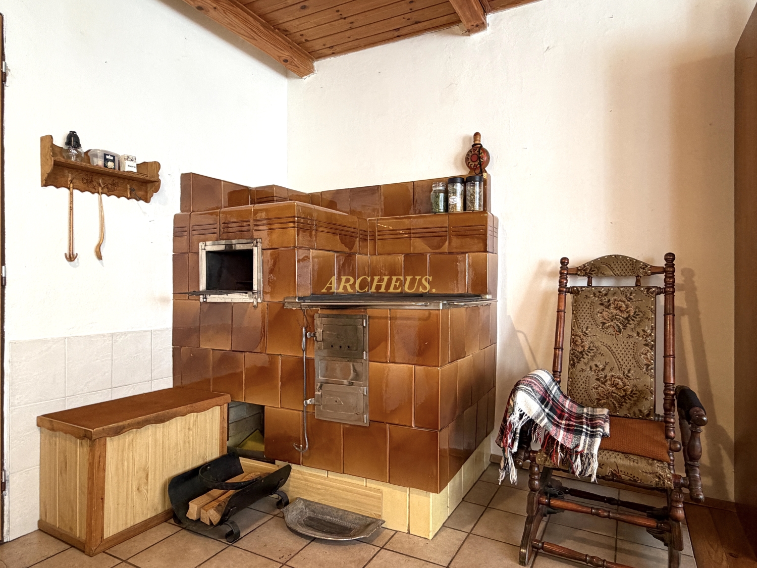 Prízemie: Vstupná chodba, priestranná obývacia izba s výstupom na terasu a kuchyňa s kachľovou pecou a samostatnou komorou. Na tomto podlaží sa nachádza kúpeľňa (vaňa aj sprchový kút) a technický kútik s plynovým kotlom.