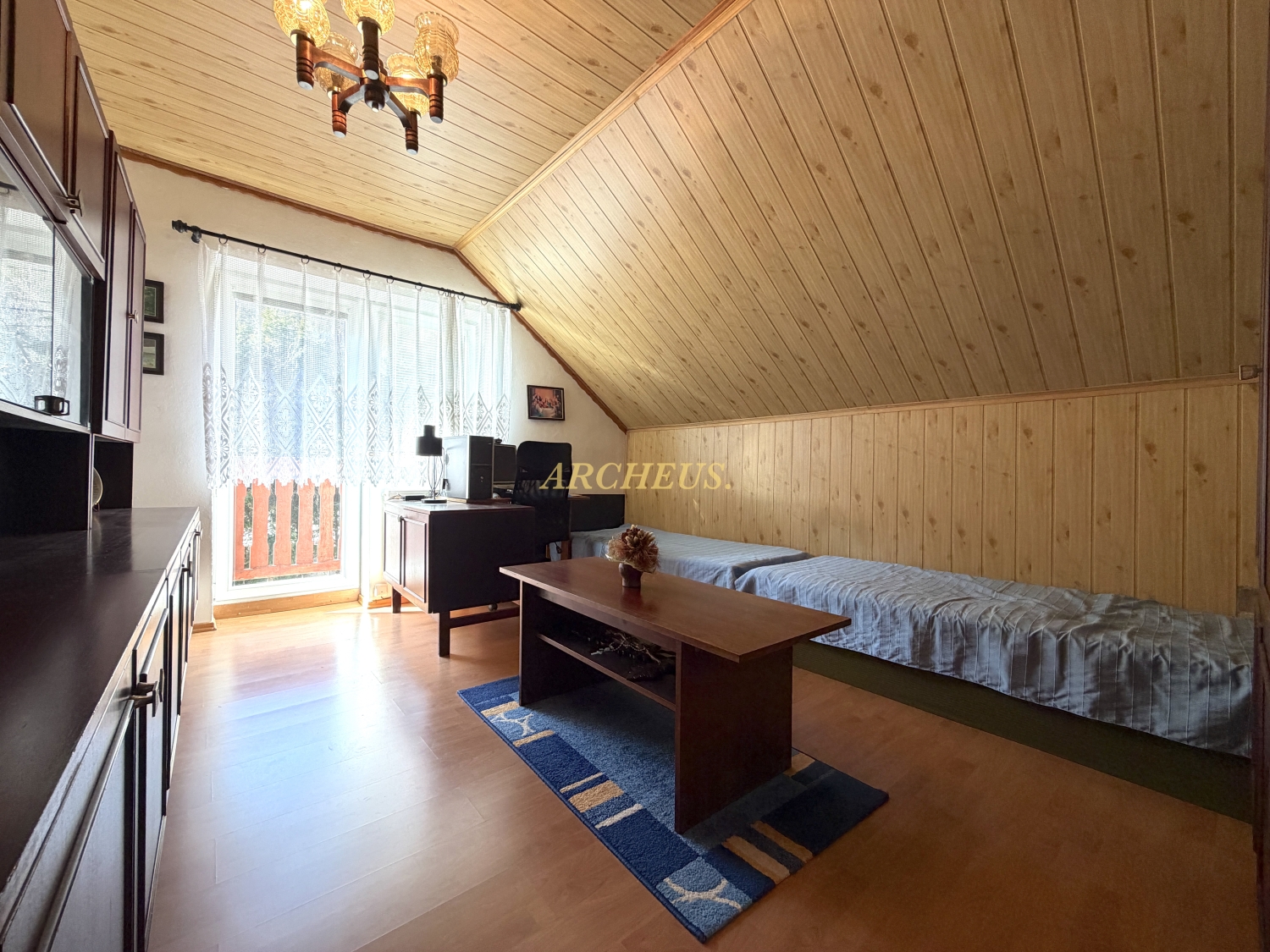 K domu prislúcha funkčná prístavba so samostatným vstupom, ktorá výrazne rozširuje potenciál nehnuteľnosti. Môže slúžiť ako plnohodnotný hosťovský dom, podnikateľské priestory, alebo ako investičná príležitosť na prenájom, čím sa stáva zaujímavým zdrojom príjmu.