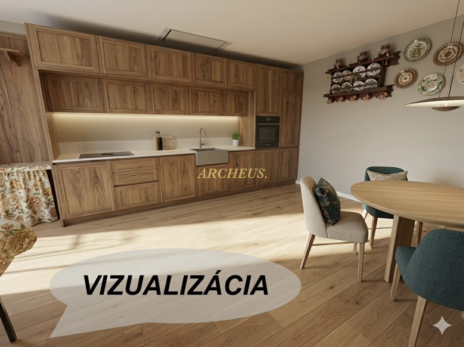 • Zadná časť (Prízemie): • Kuchyňa so štýlovým starším kachľovcom (vytvára pravé teplo domova), letná kuchyňa, ďalšie 2 izby, chodba a kúpeľňa s WC.